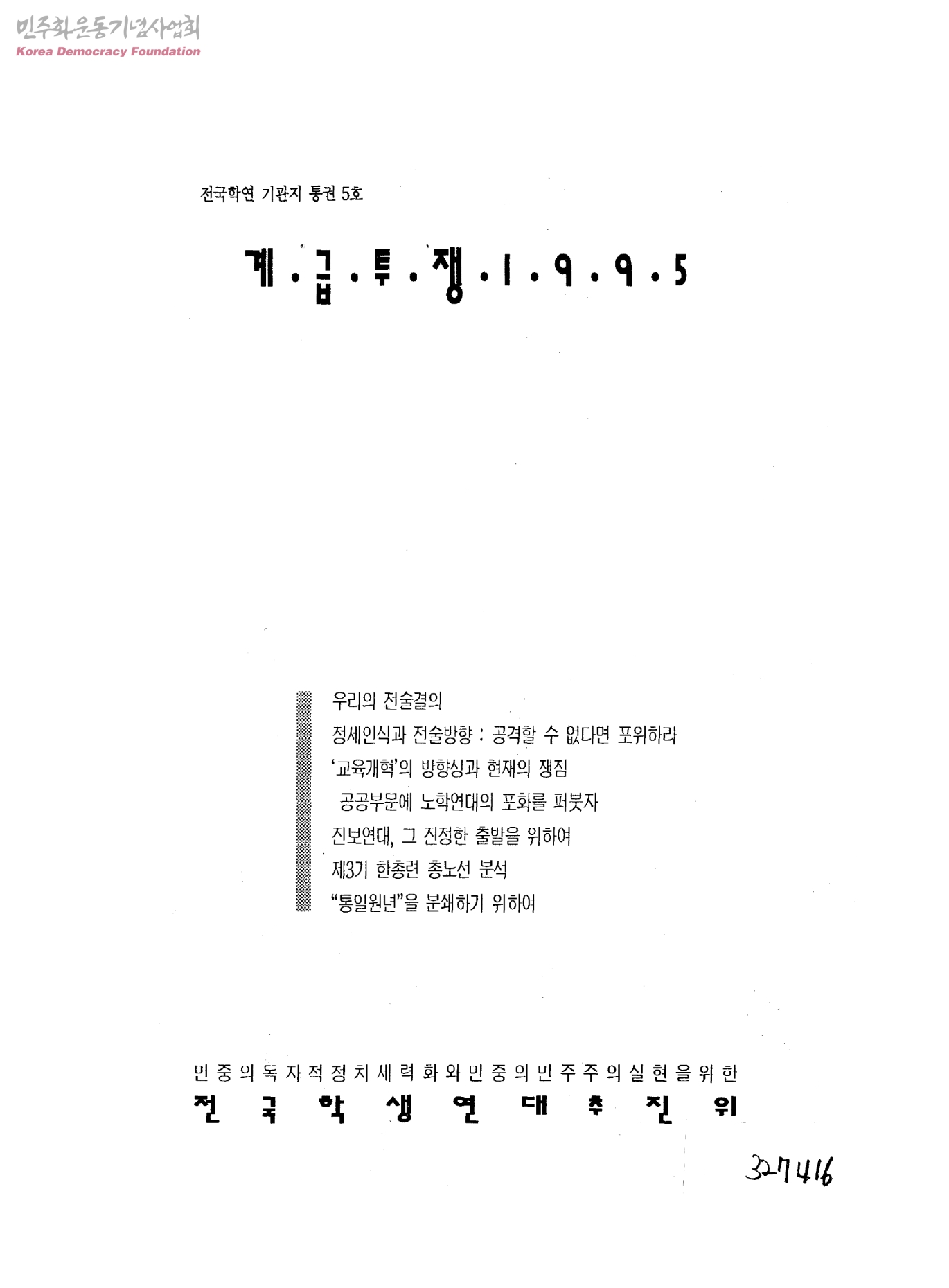 전국학연 기관지 통권5호 계급투쟁 1995