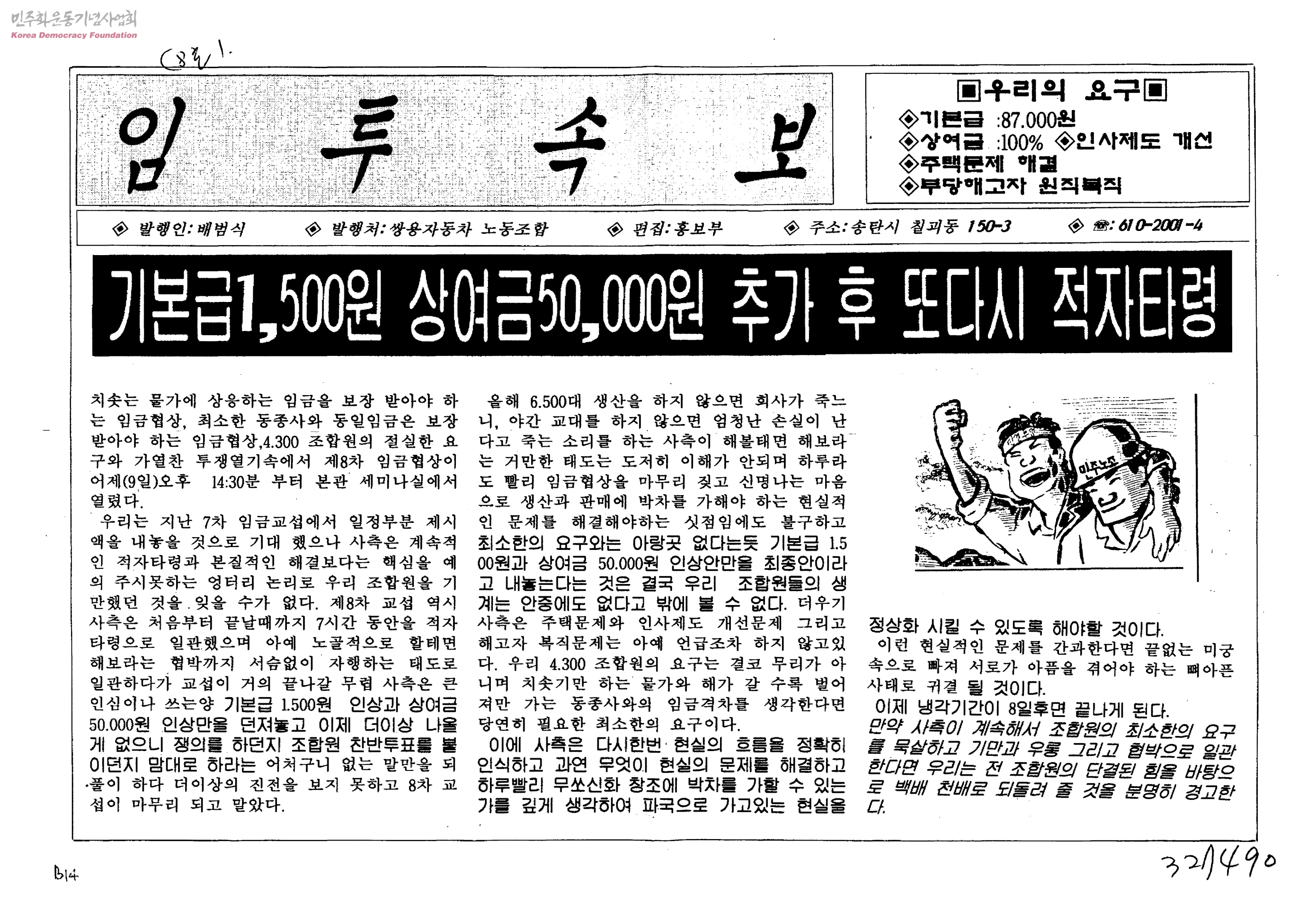 임투소식-기본급1,500원 상여금50,000원 추가 후 또다시 적자타령