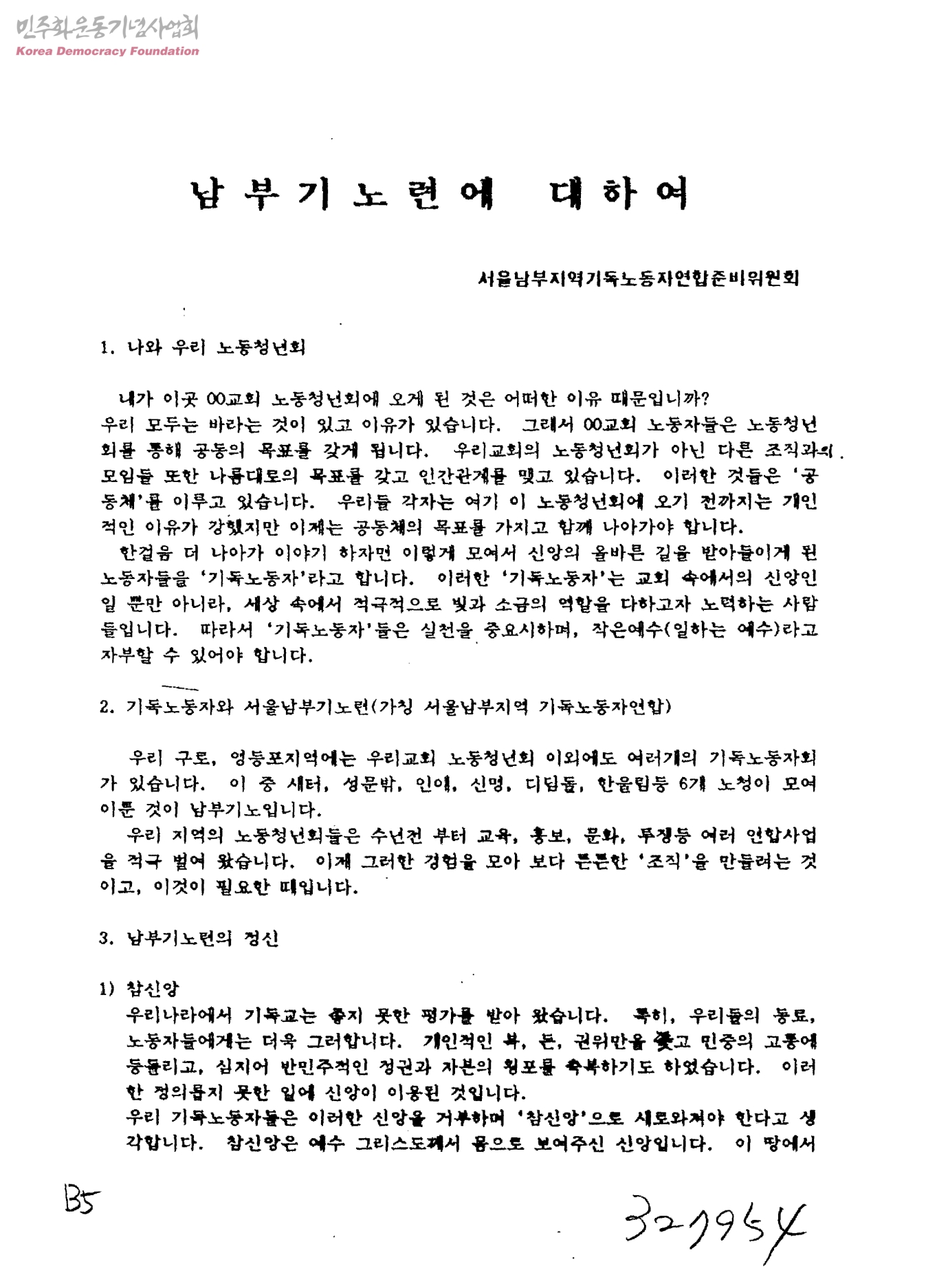 - 서울남부지역기독노동자연합준비위원회