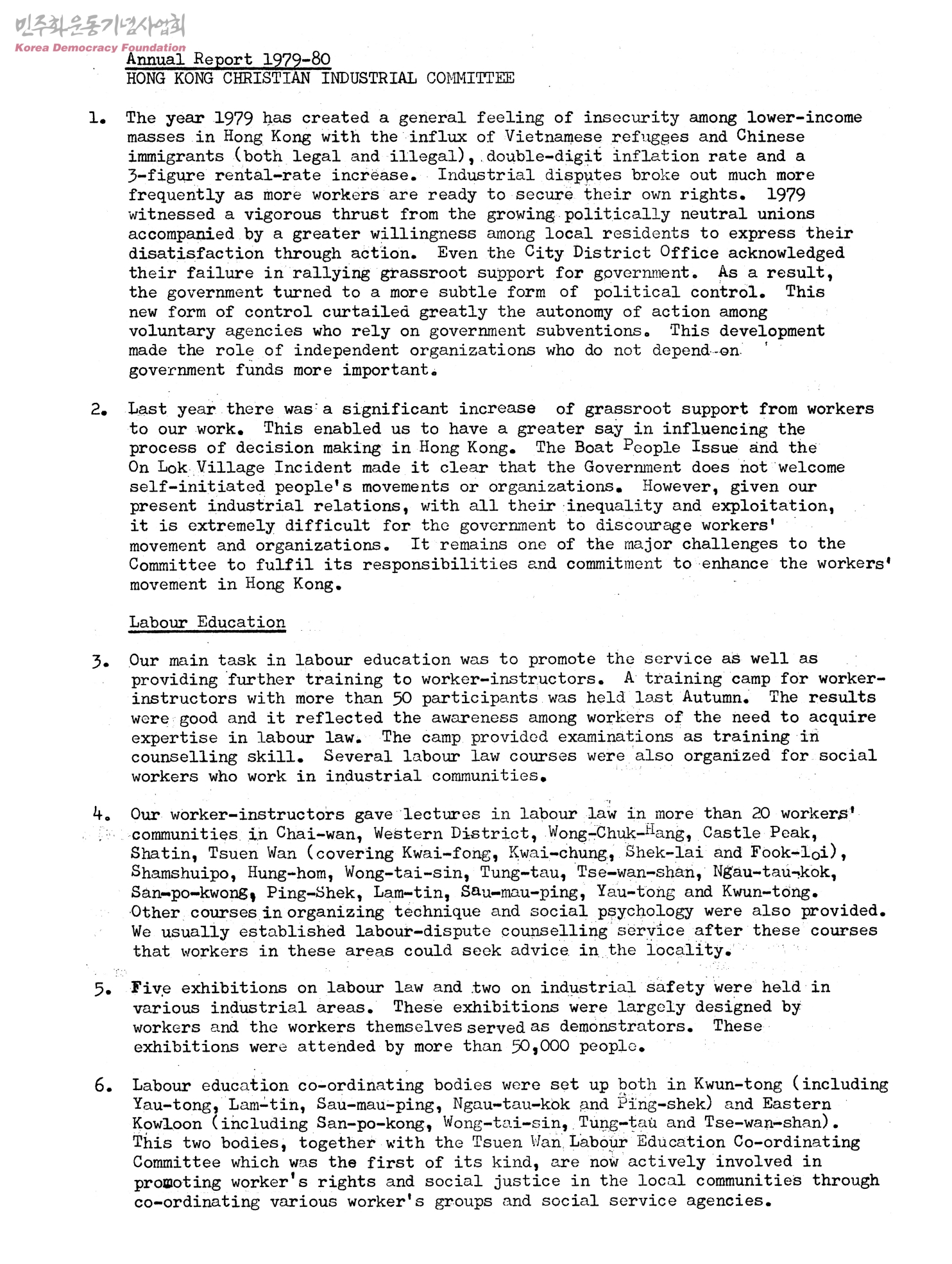 HONG KONG CHRISTIAN INDUSTRIAL COMMITTEE Annual Report 1979-80