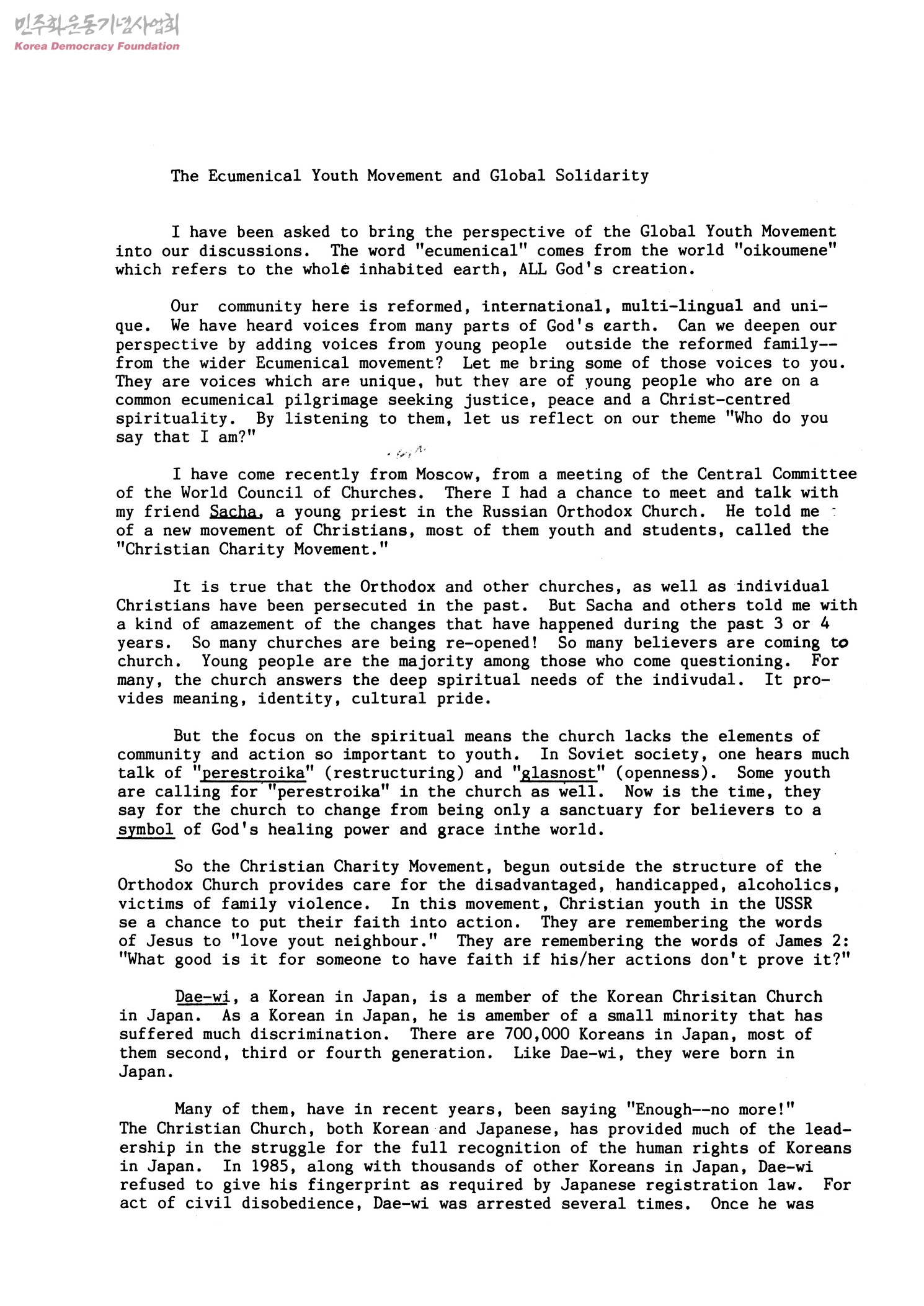 The Ecumenical Youth Movement and Global Solidarity