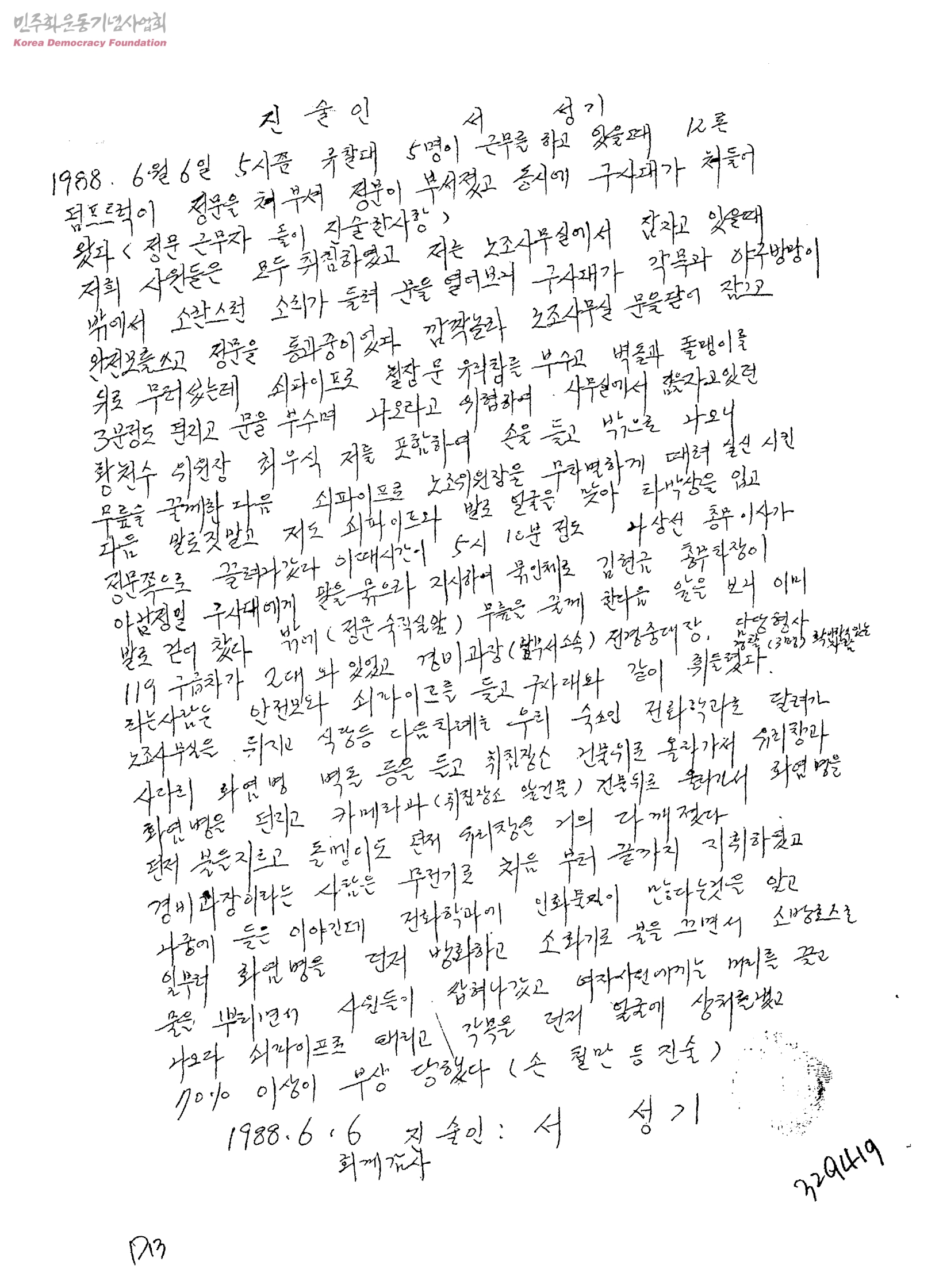 - 생산자 및 기증자가 ‘경향신문사’인 사진의 사용은 경향신문사 담당자(02-3701-1635)를 통해 구매하실 수 있습니다. 그 외의 생산자 및 기증자는 민주화운동기념사업회 사료관 담당자( hyunchaek@kdemo.or.kr / 02-6440-8961 )에게 문의바랍니다.