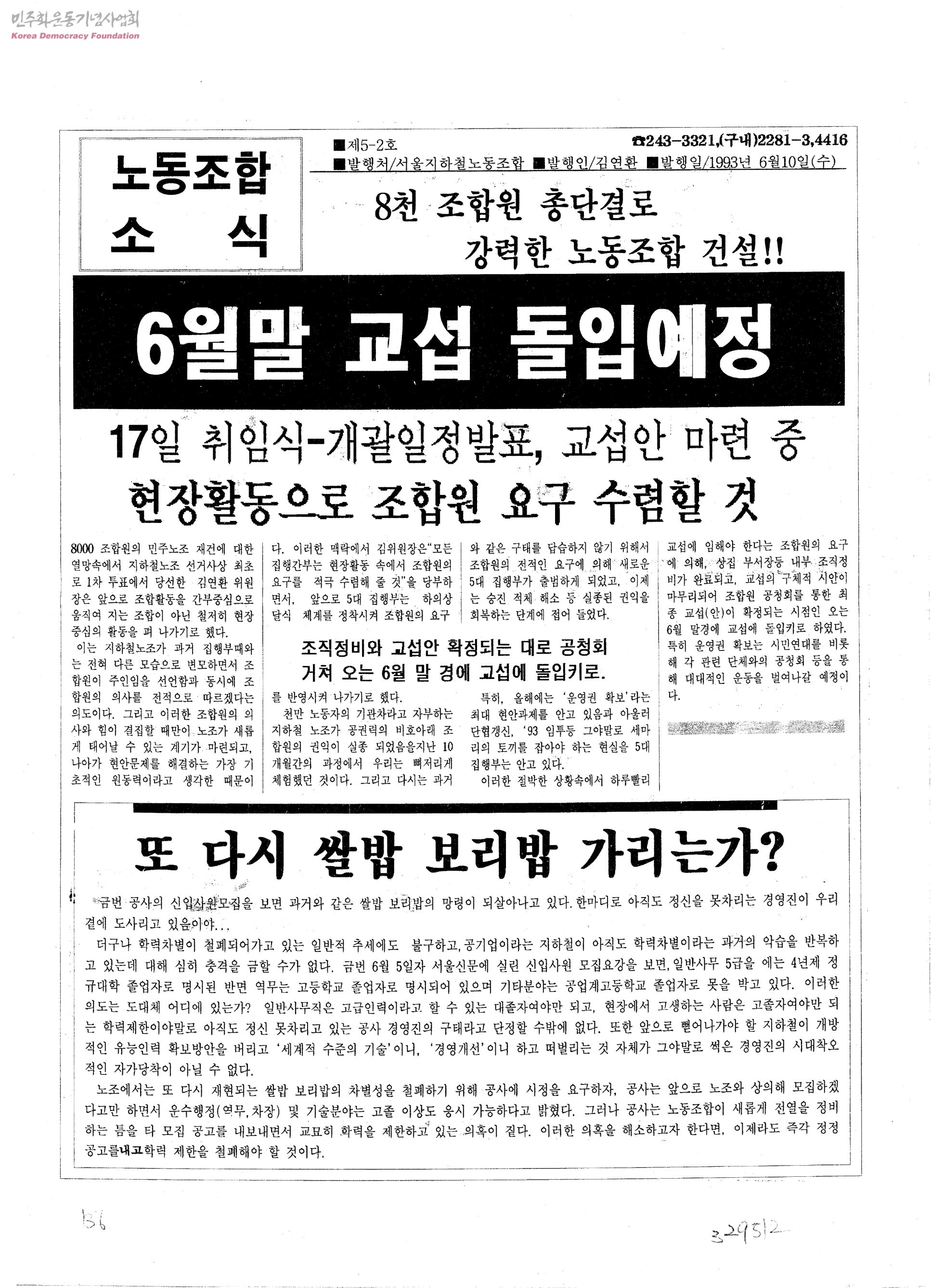 노동조합소식 제5-2호 8천 조합원 총단결로 강력한 노동조합 건설!- 6월말 교섭 돌입예정
