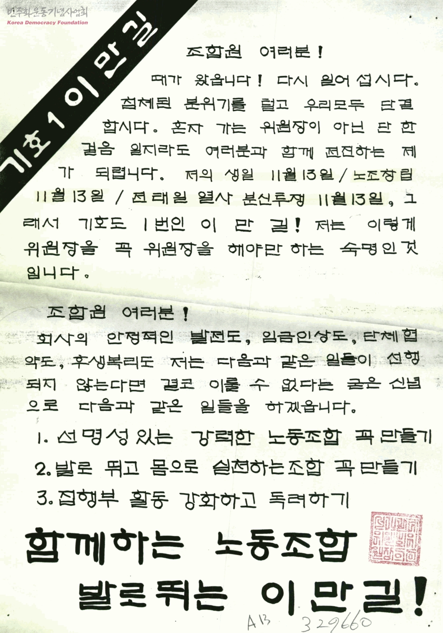 - 에너지관리공단 노동조합 위원장 입후보자 이만길씨의 홍보용 전단