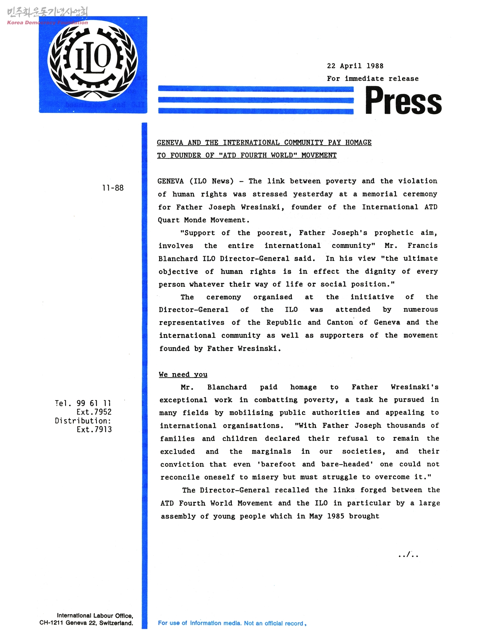 Geneva and the interantional community pay homage to founder of "atd fourth world"movement