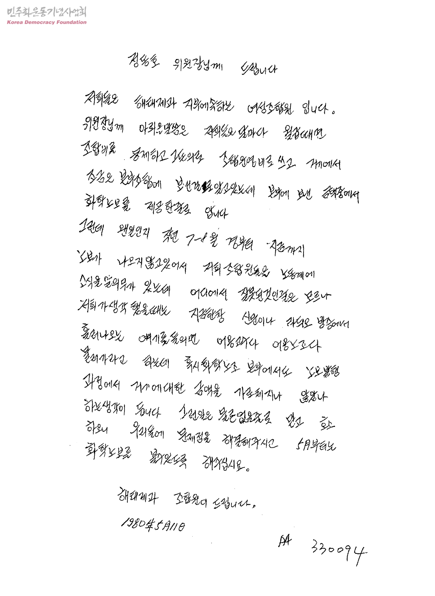 정동호 위원장님께 드립니다[서명날인]