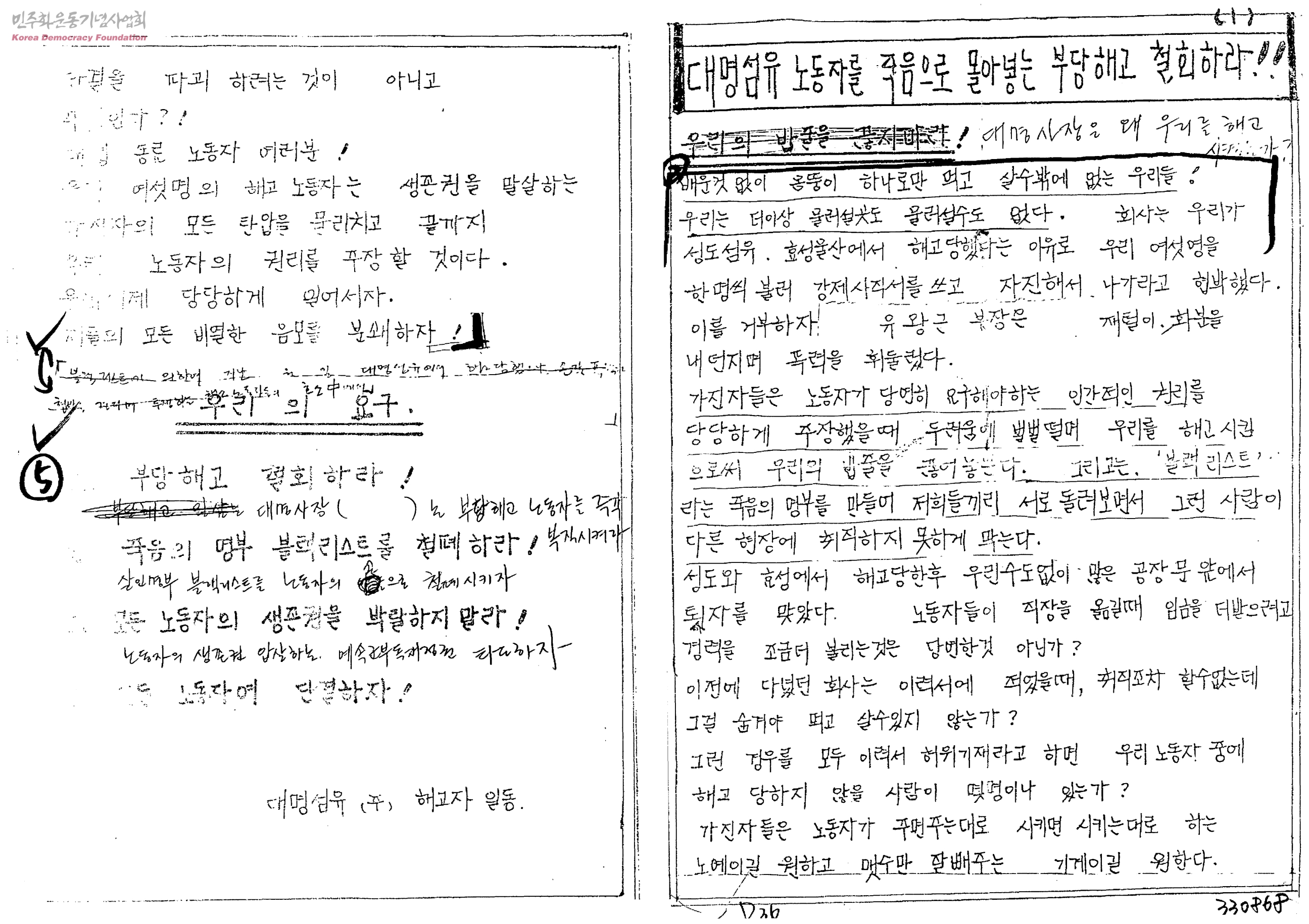 - 대명섬유(주)해고자일동