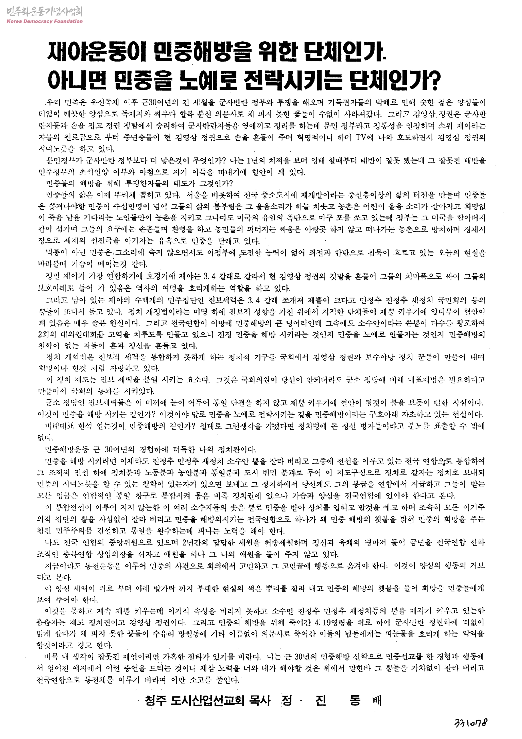 - 청주도시산업선교회 정진동목사