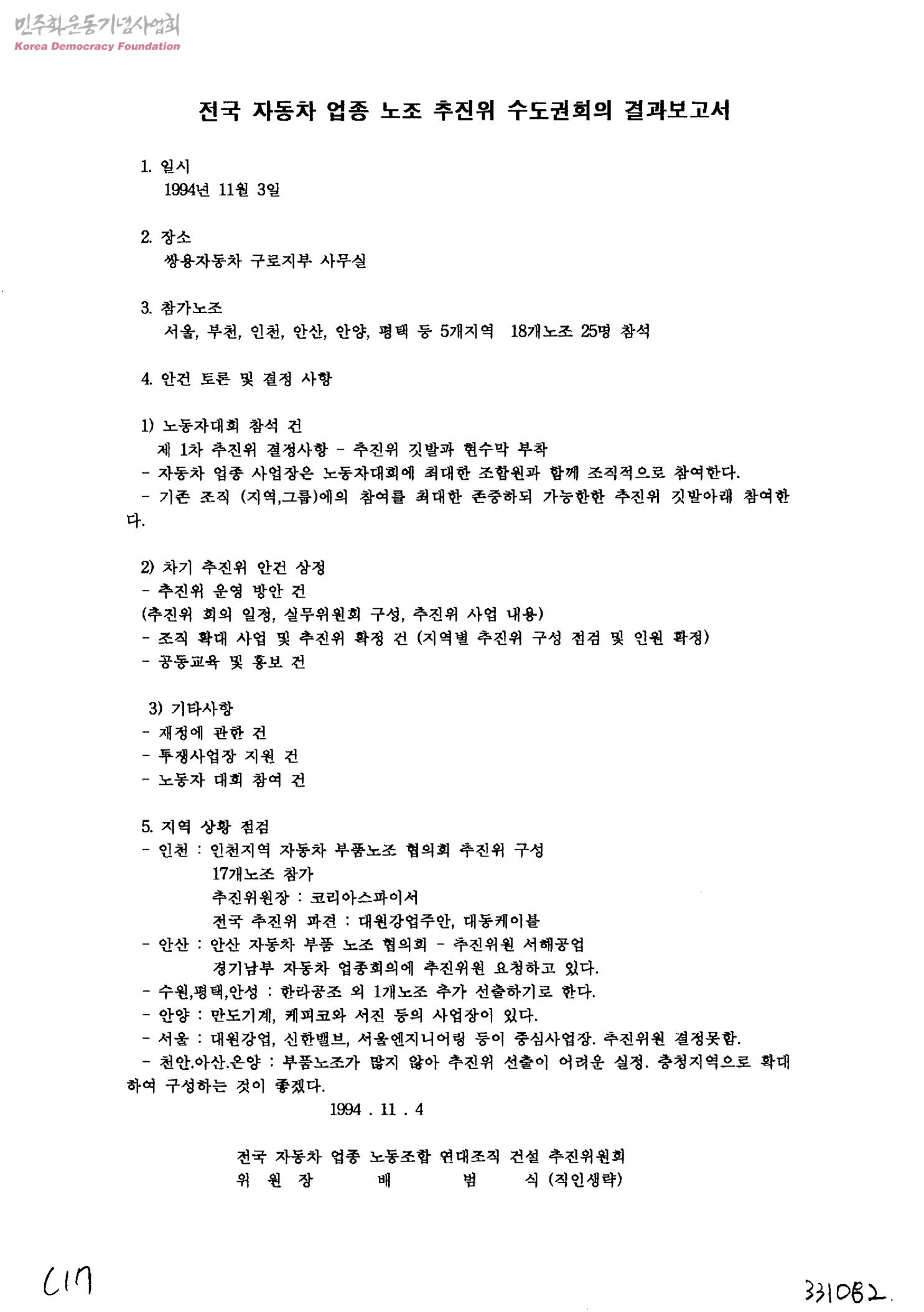 - 전국자동차업종노조연대조직건설추진위원회추진위원장배범식