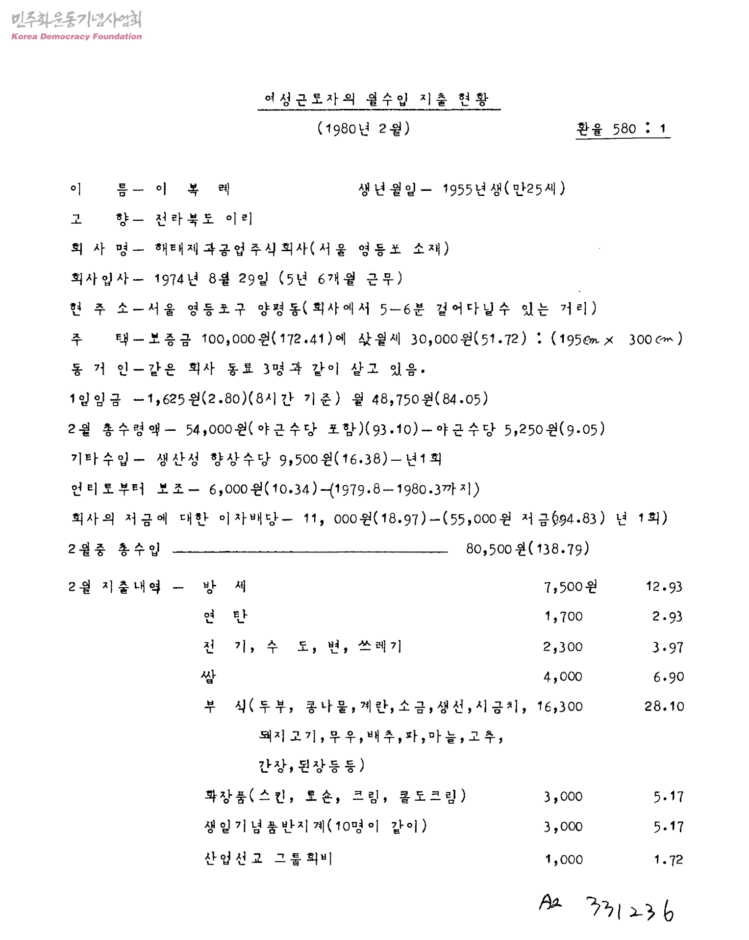 여성근로자의 월수입 지출 현황, 1980년도 물가현황