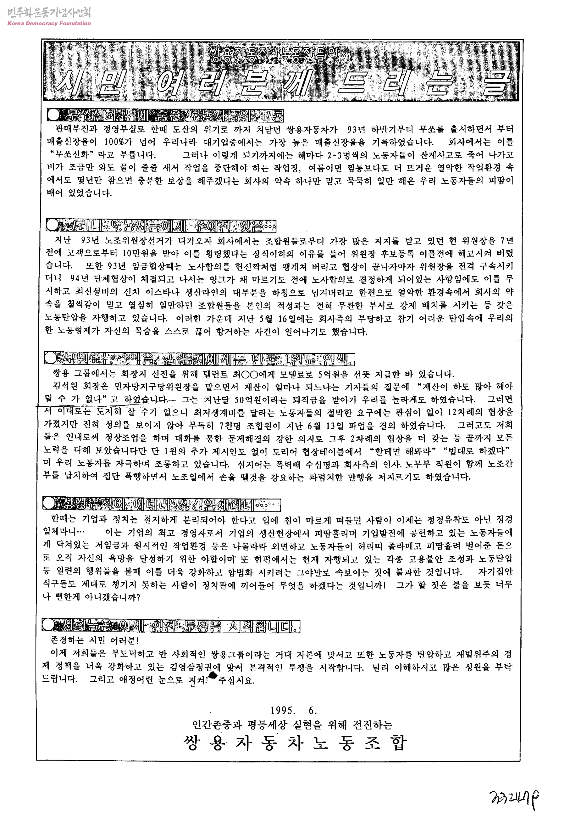시민 여러분께 드리는 글