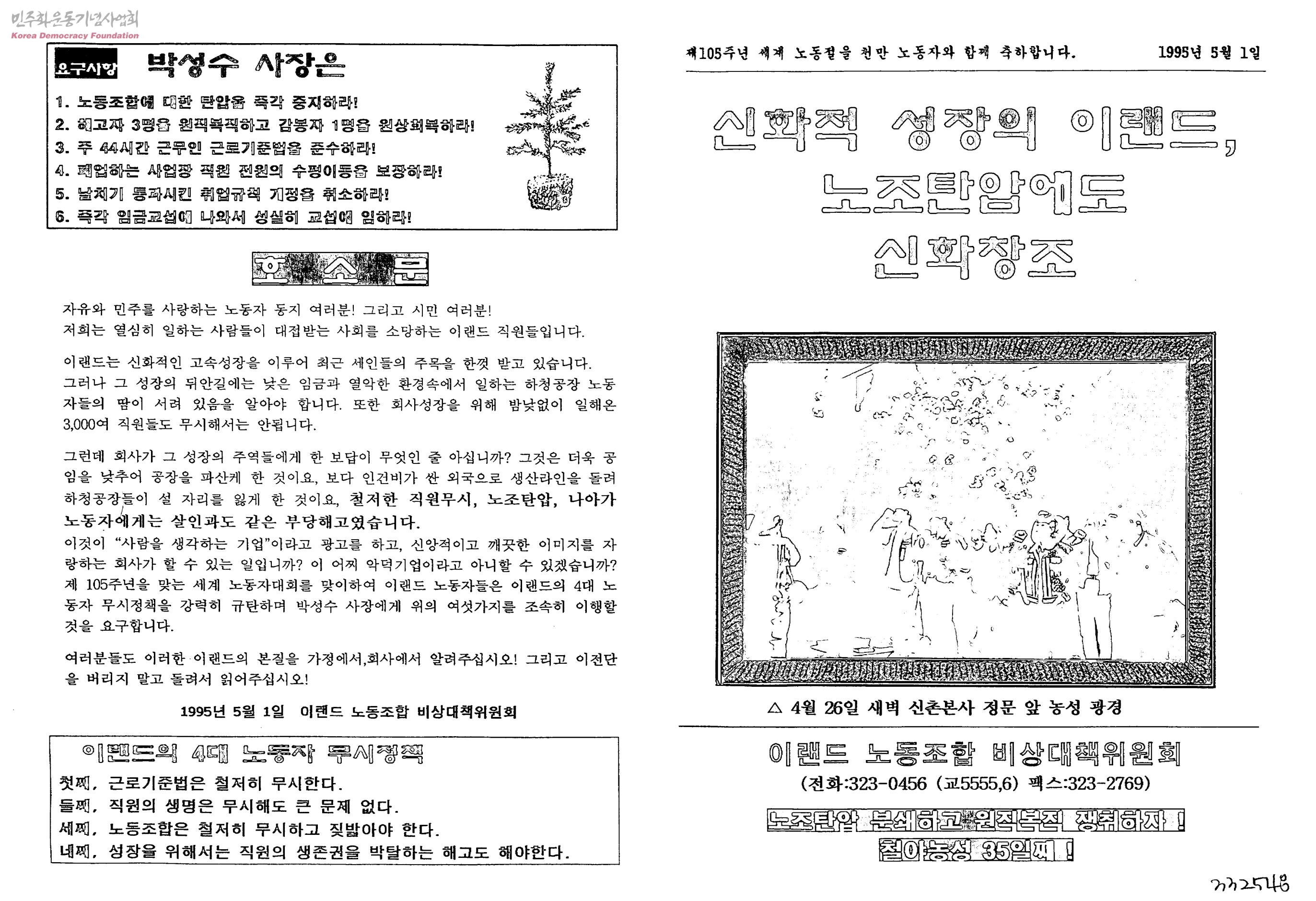 제105주년 세계 노동절을 천만 노동자와 함께 축하합니다 <신화적 성장의 이랜드, 노조탄압에도 신화창조>