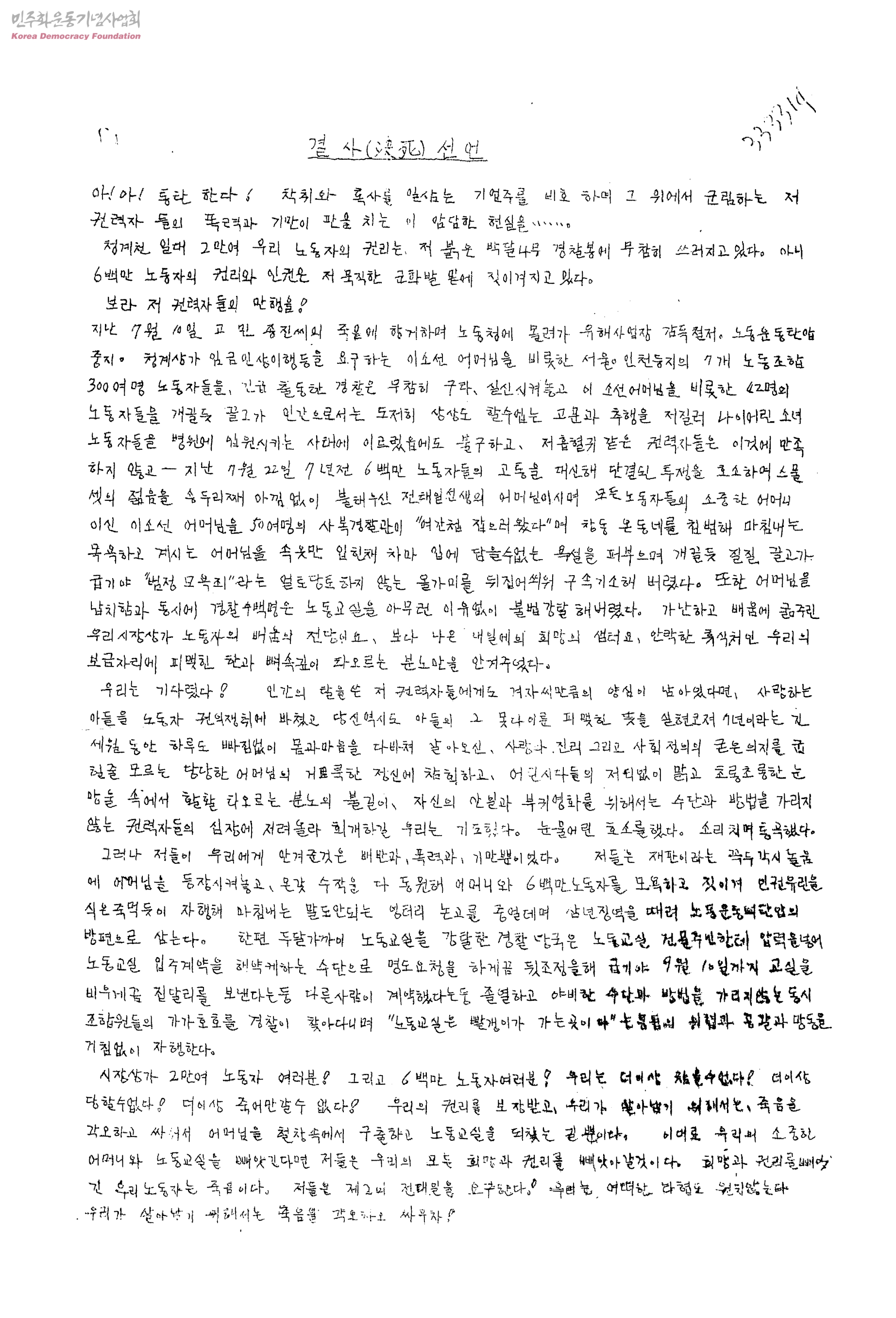 결사선언[이소선씨 연행 관련]
