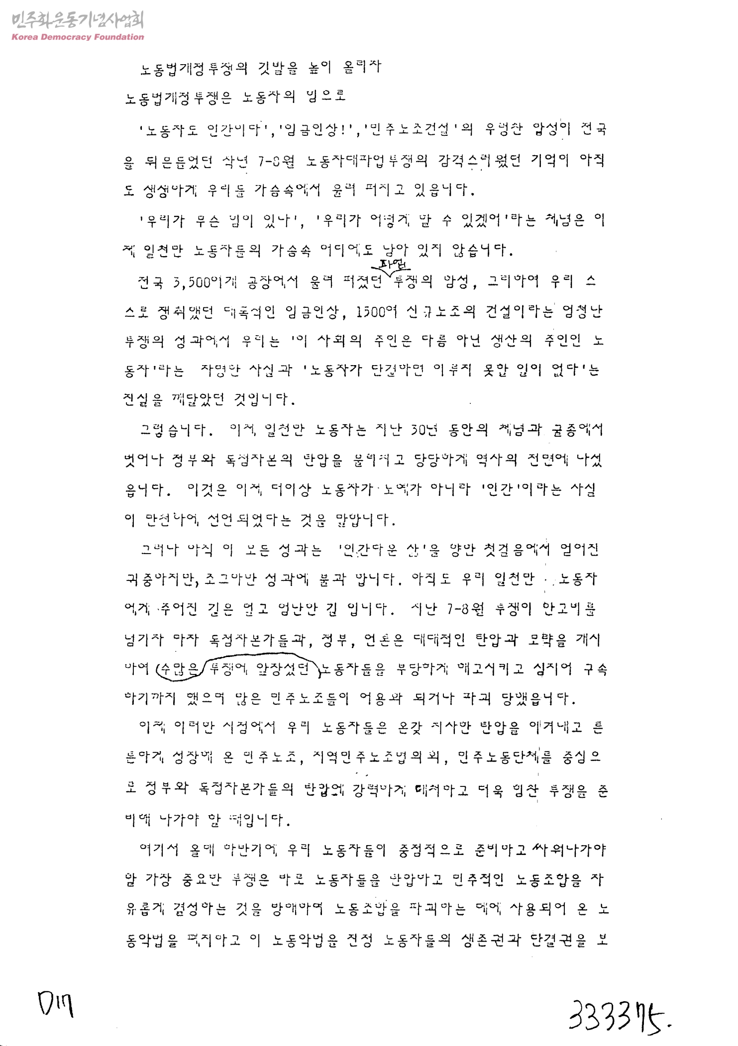 노동개정투쟁의 깃발을 높이 올리자-노동법개정은 노동자의 힘으로