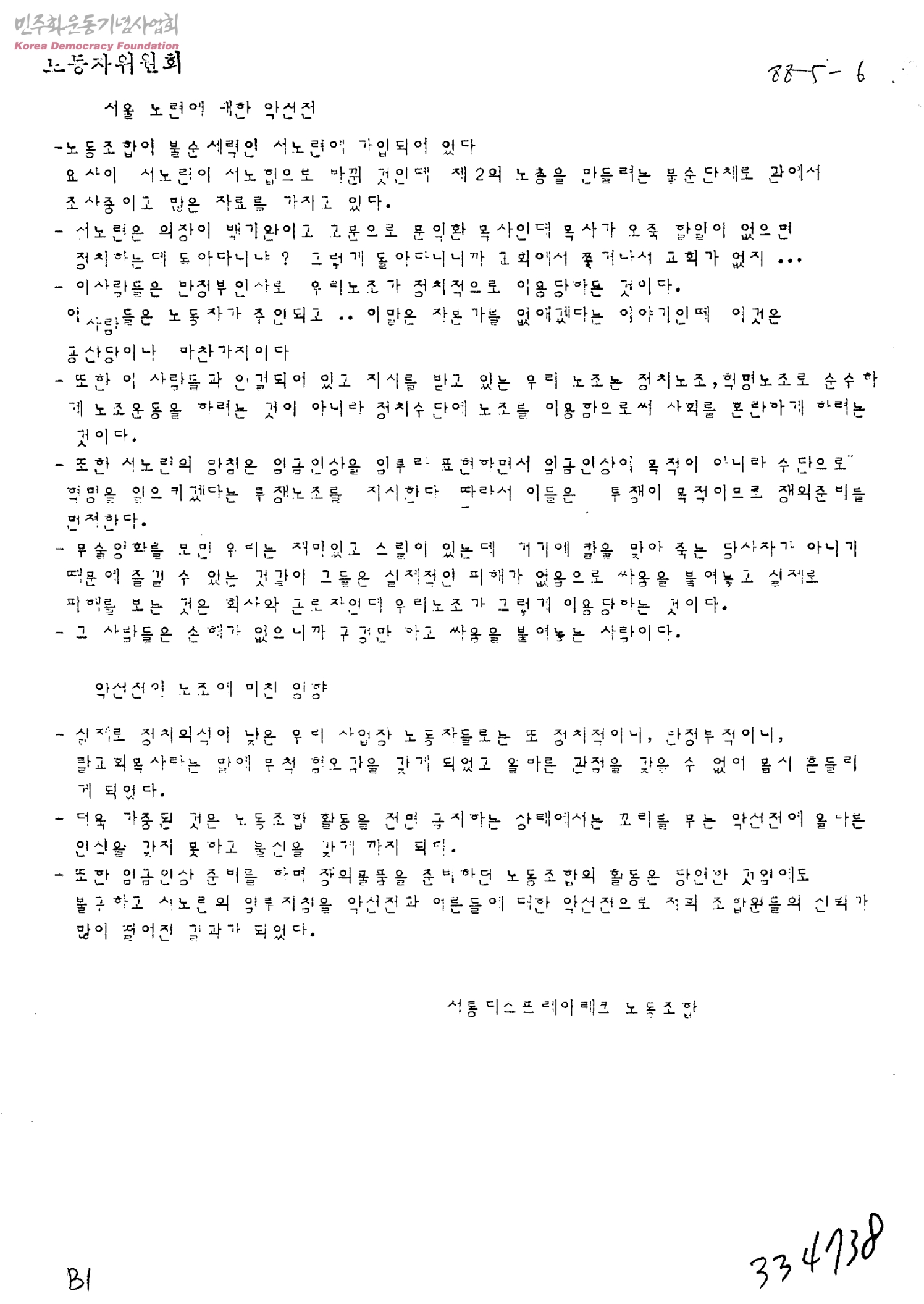 서울노련에 대한 악선전