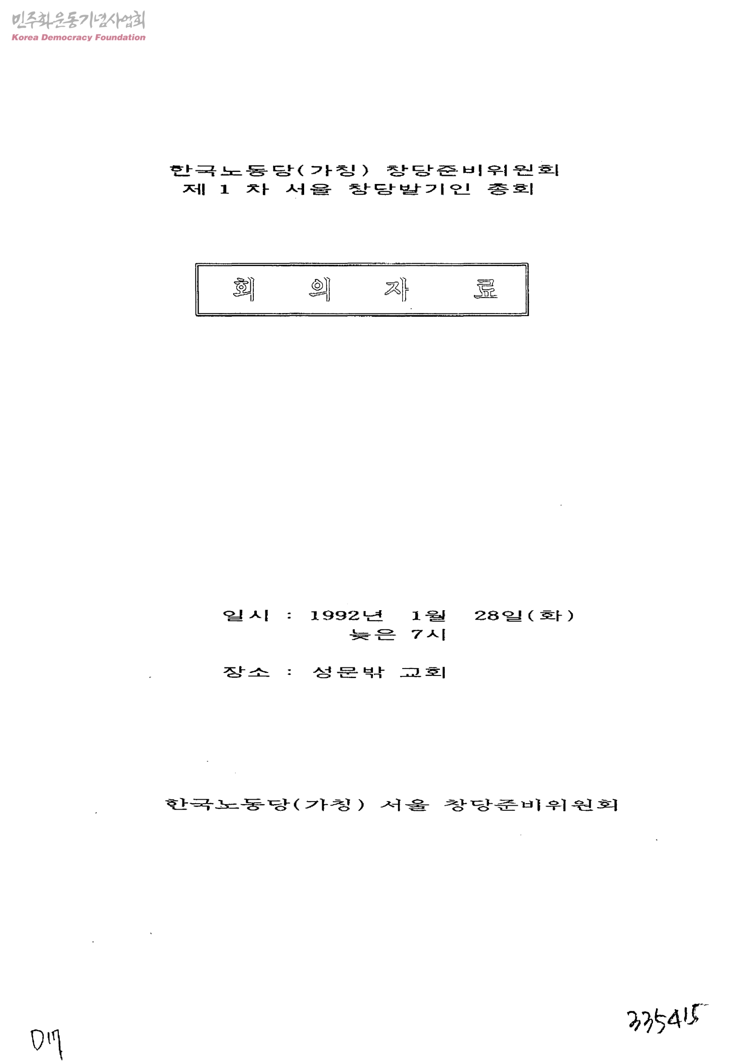 한국노동당(가칭) 창당준비위원회 제1차 서울 창당발기인 총회 회의자료