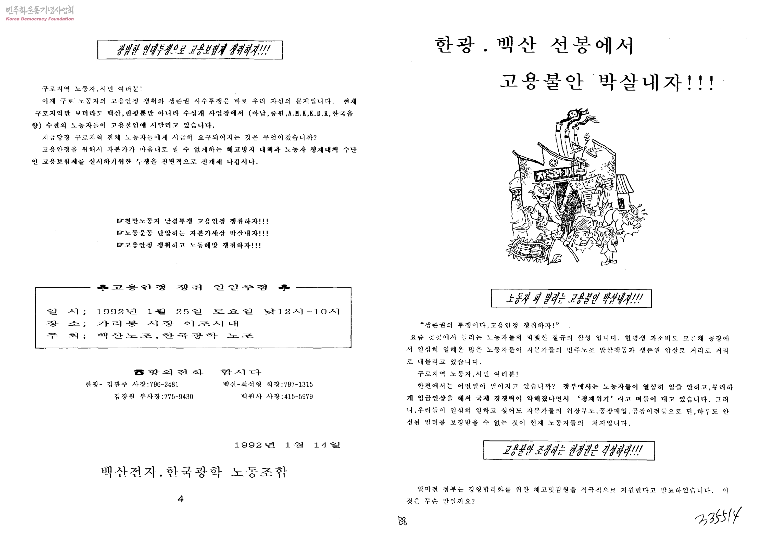한광백산선봉에서 고용불안 박살내자