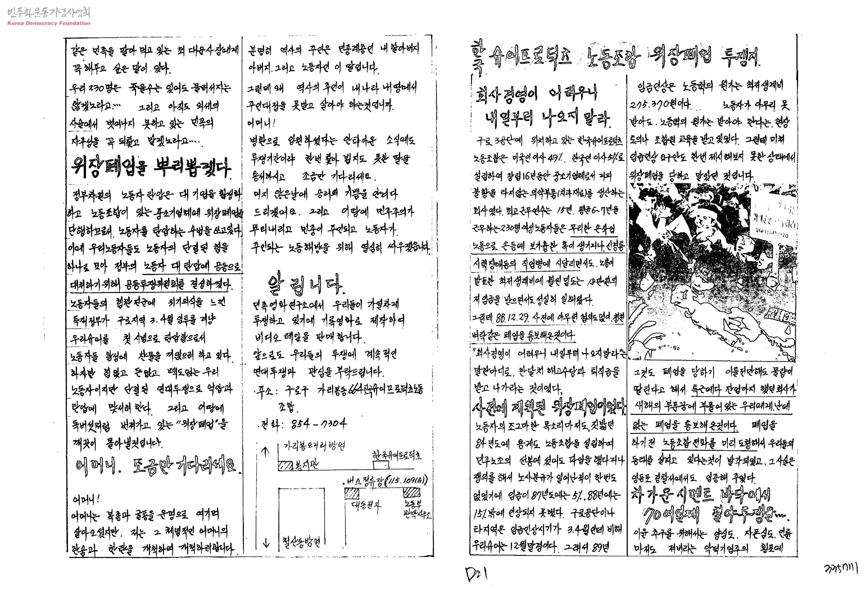 한국 슈어프로덕츠 노동조합 위장폐업 투쟁지