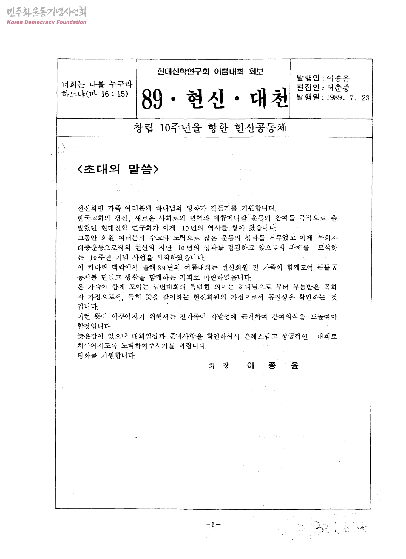 89·현신·대천-창립 10주년을 향한 현신공동체