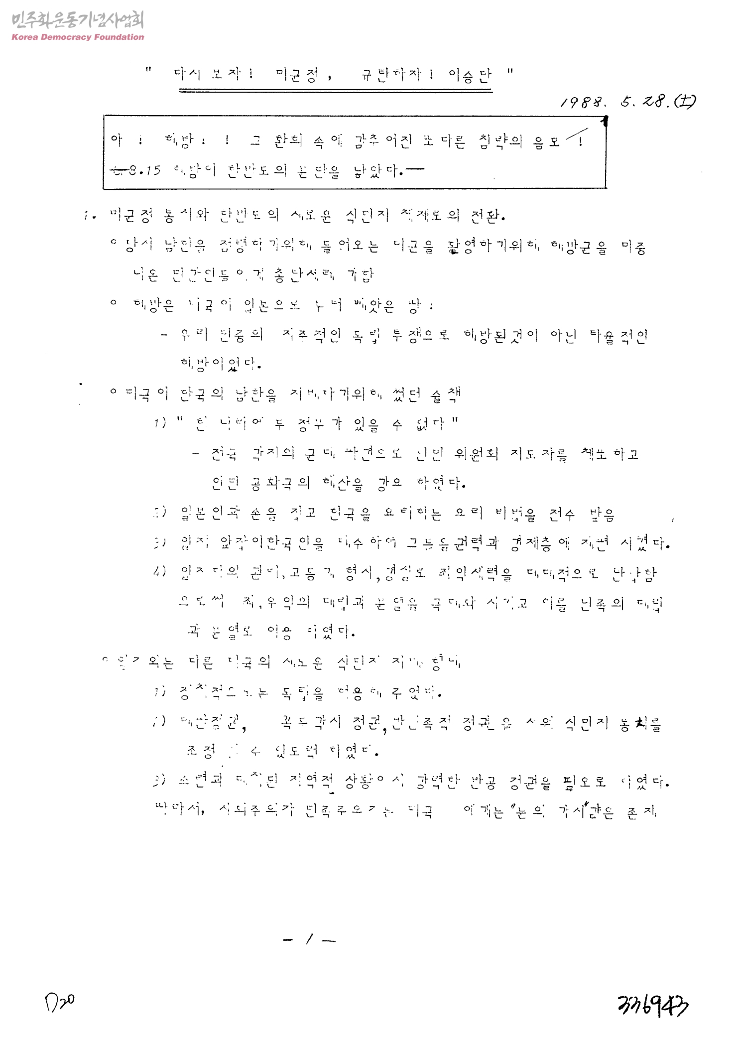 다시보자! 미군정, 규탄하자! 이승만