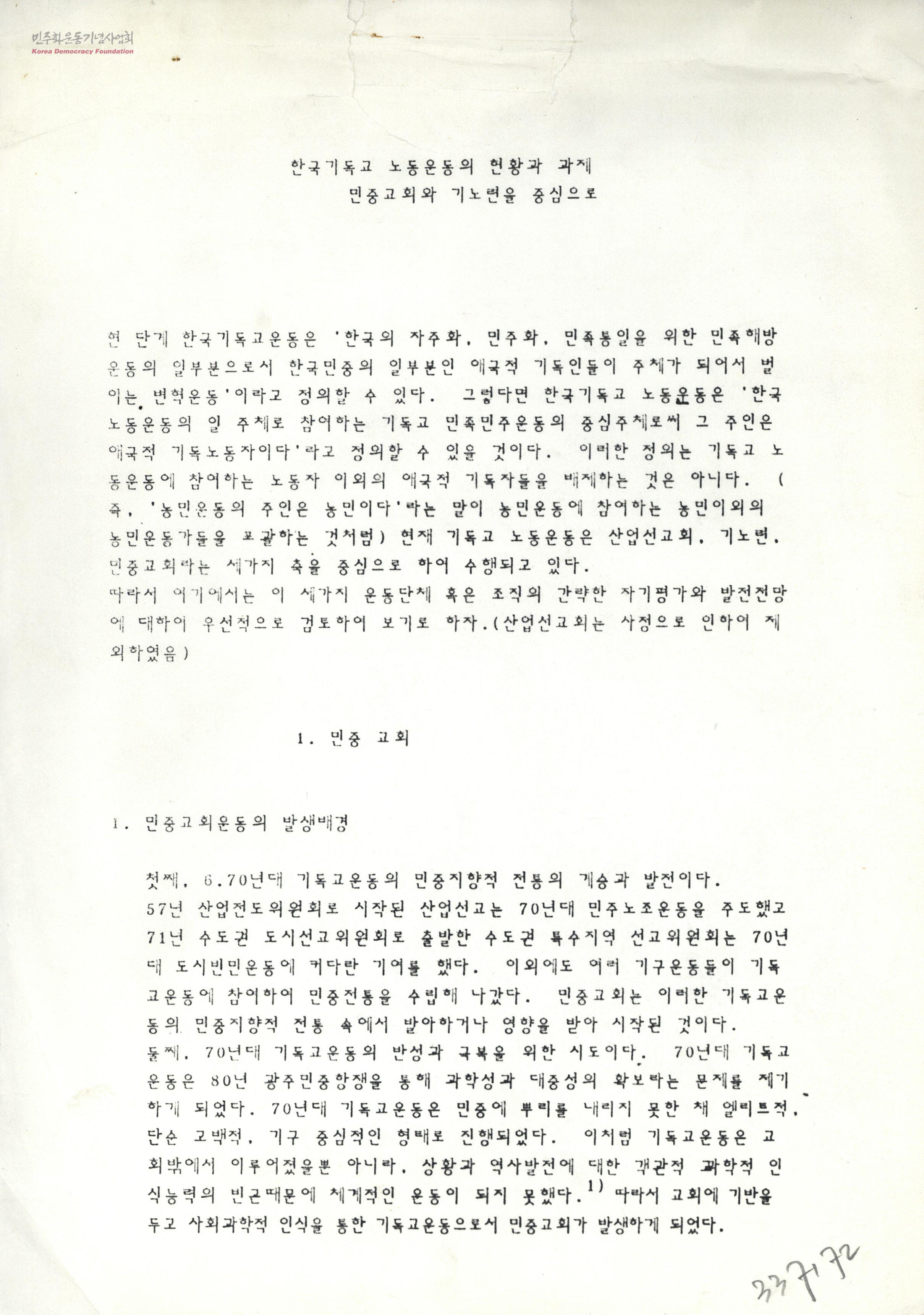 한국기독교 노동운동의 현황과 과제-민중교회와 기노련을 중심으로