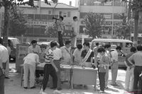 - 생산자 및 기증자가 ‘박용수’인 사진의 사용은 구매신청을 클릭하여 직접 사진 구매 신청을 하실 수 있습니다. 생산자 및 기증자가 ‘경향신문사’인 사진의 사용은 경향신문사 담당자(02-3701-1635)를 통해 구매하실 수 있습니다. 그 외의 생산자 및 기증자는 민주화운동기념사업회 사료관 담당자( h_jungwon@kdemo.or.kr / 031-361-9586 )에 문의바랍니다.