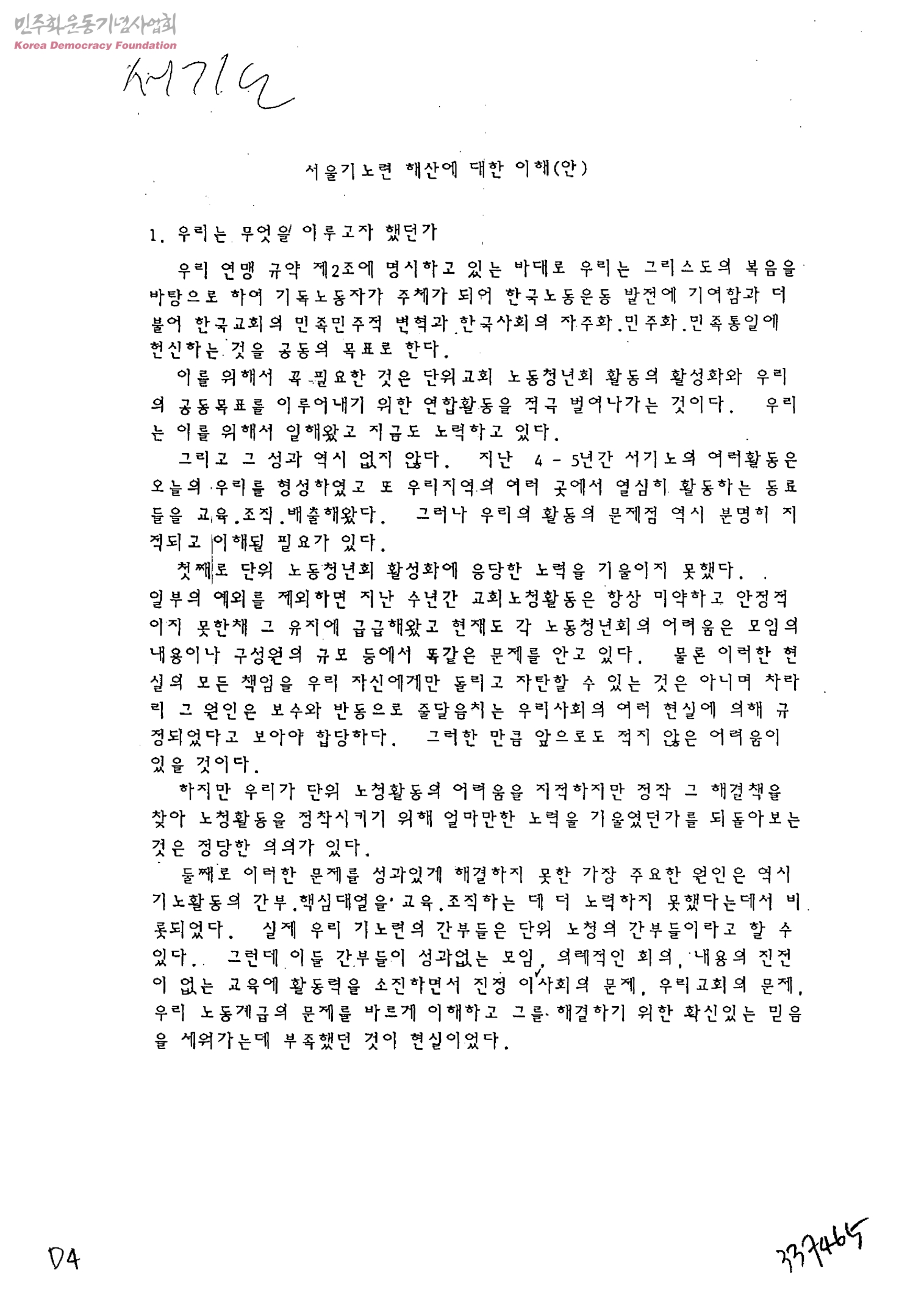 서울기노련 해산에 대한 이해(안)