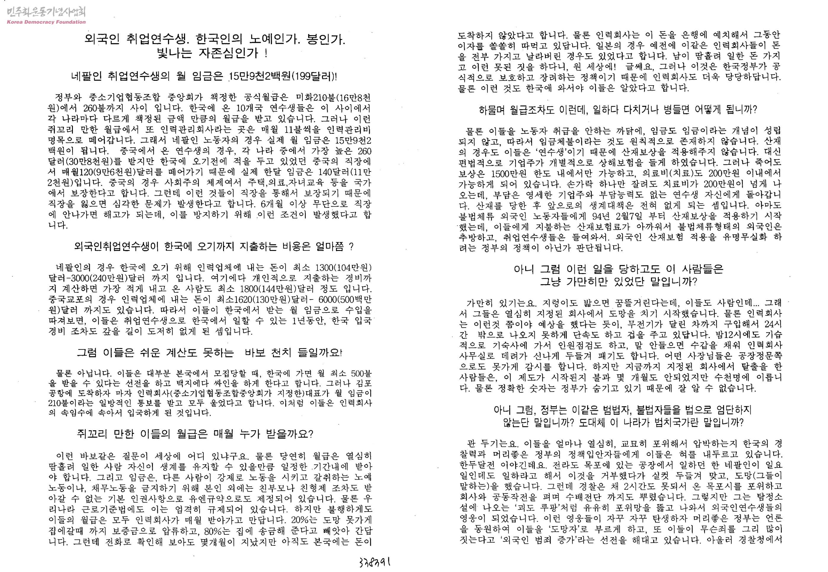 외국인 취업연수생. 한국인의 노예인가. 봉인가. 빛나는 자존심인가!