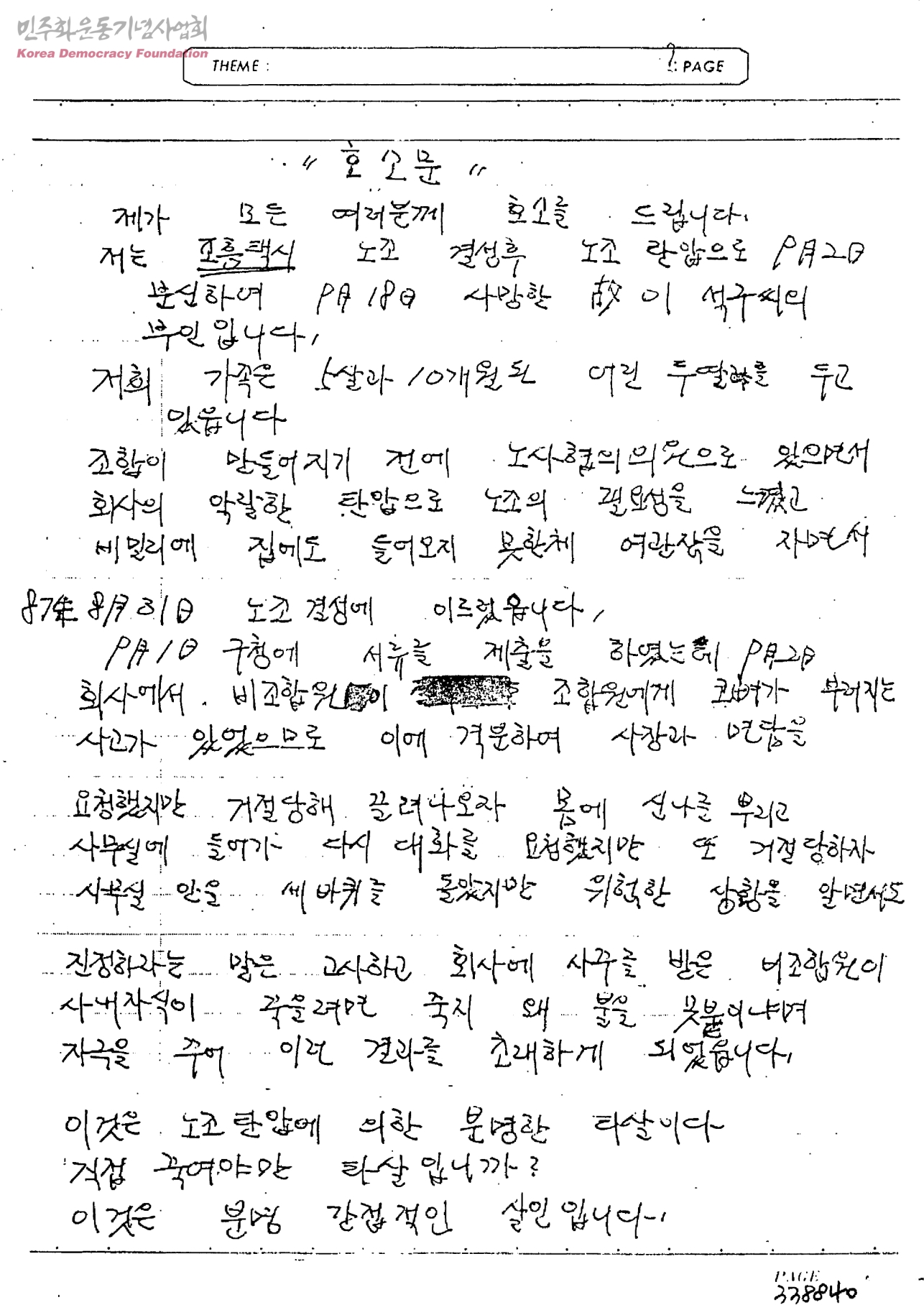 호소문[조흥택시노동조합 이석구의 분신 관련]