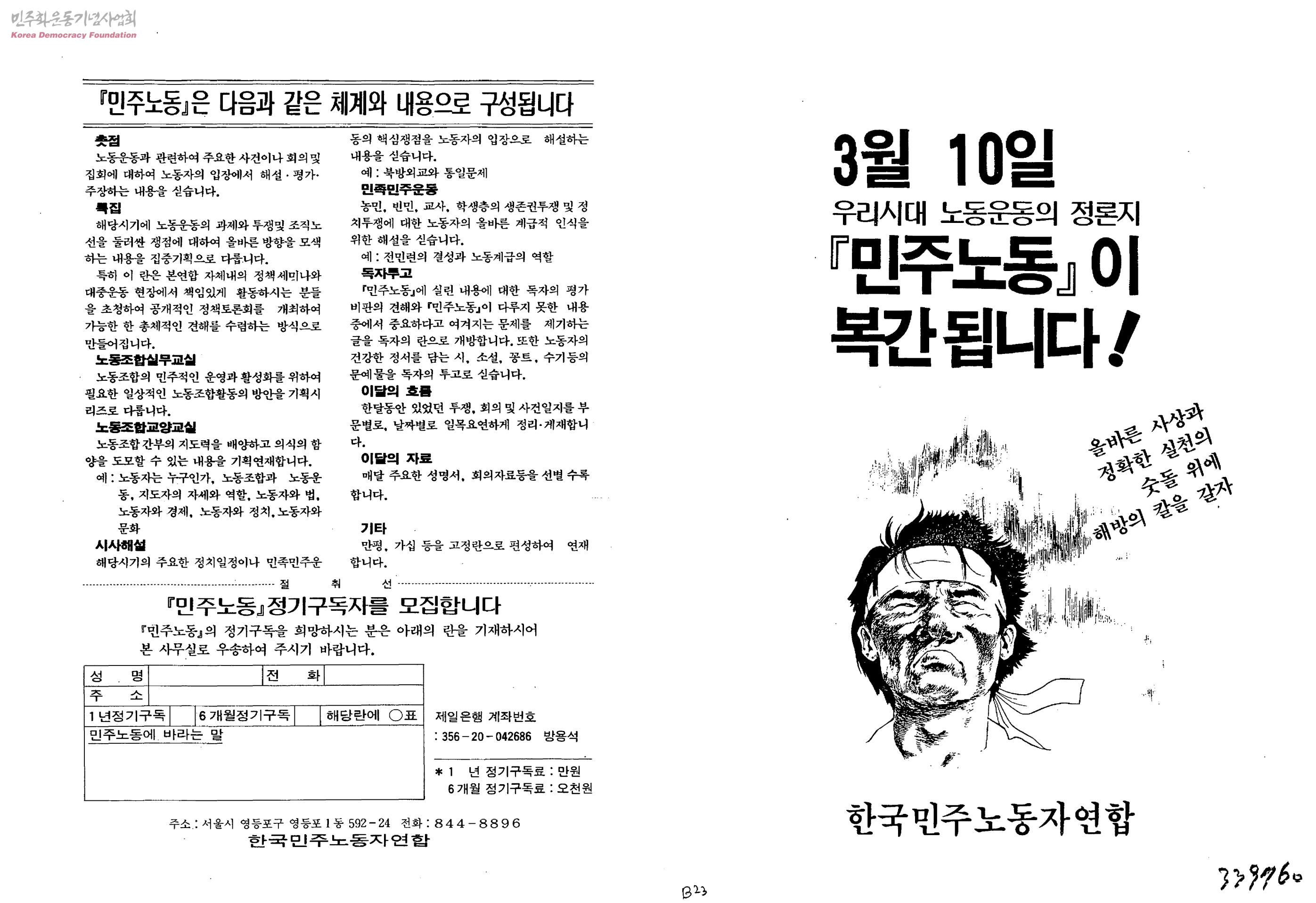 3월 10일 우리시대 노동운동의 정론지 『민주노동』이 복간됩니다-올바른 사상과 정확한 실천의 숫돌위에 해방의 칼을 갈자