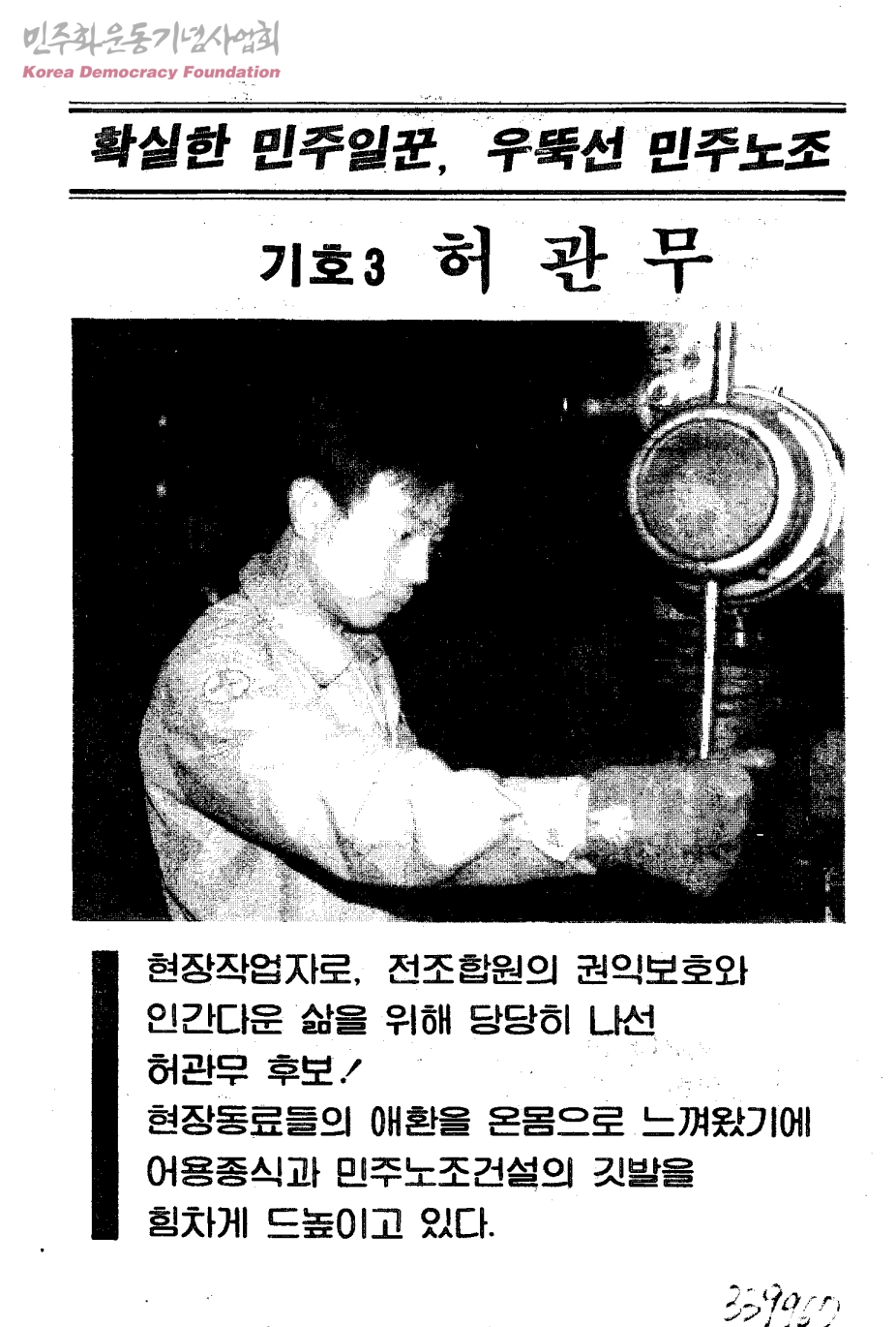 확실한 민주일꾼, 우뚝선 민주노조 기호3 허관무