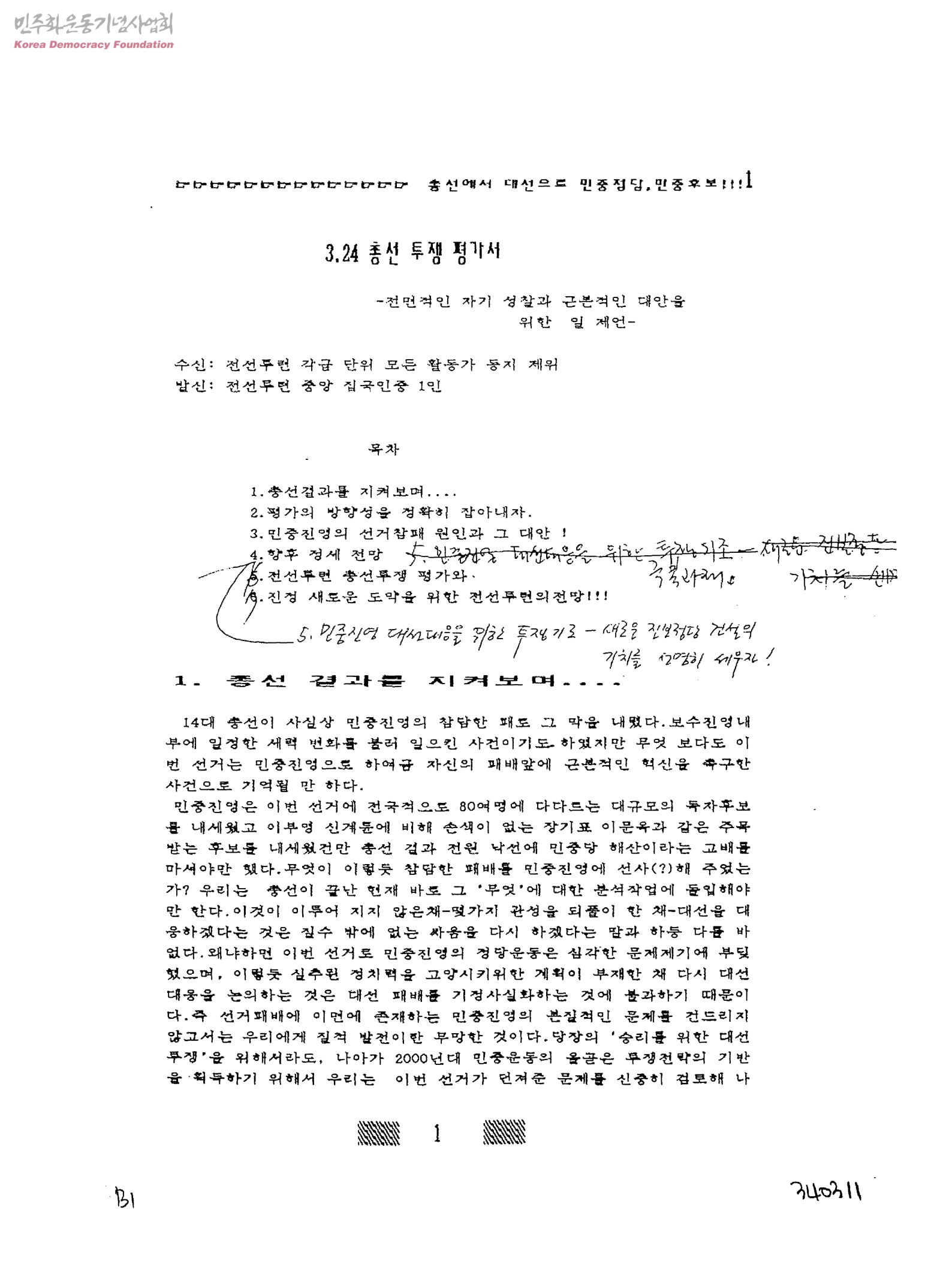 3.24 총선 투쟁 평가서-전면적인 자기 성찰과 근본적인 대안을 위한 일 제언