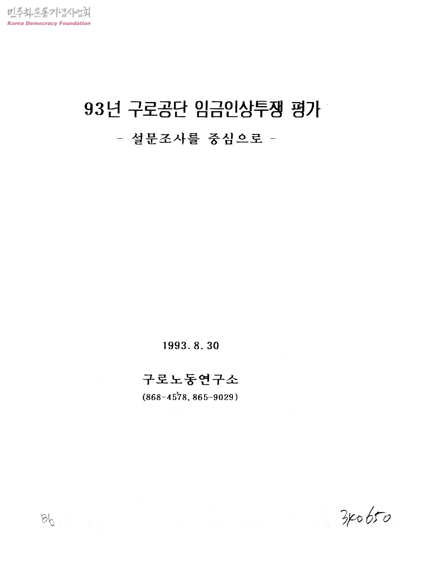 93년 구로공단 임금인상투쟁 평가-설문조사를 중심으로