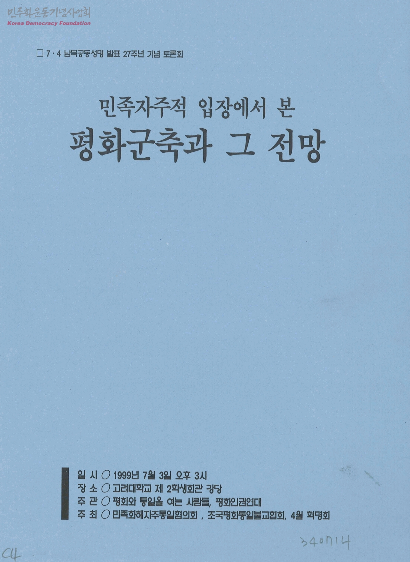 7.4남북공동성명 발표 27주년 기념 토론회-민족자주적 입장에서 본 평화군축과 그 전망