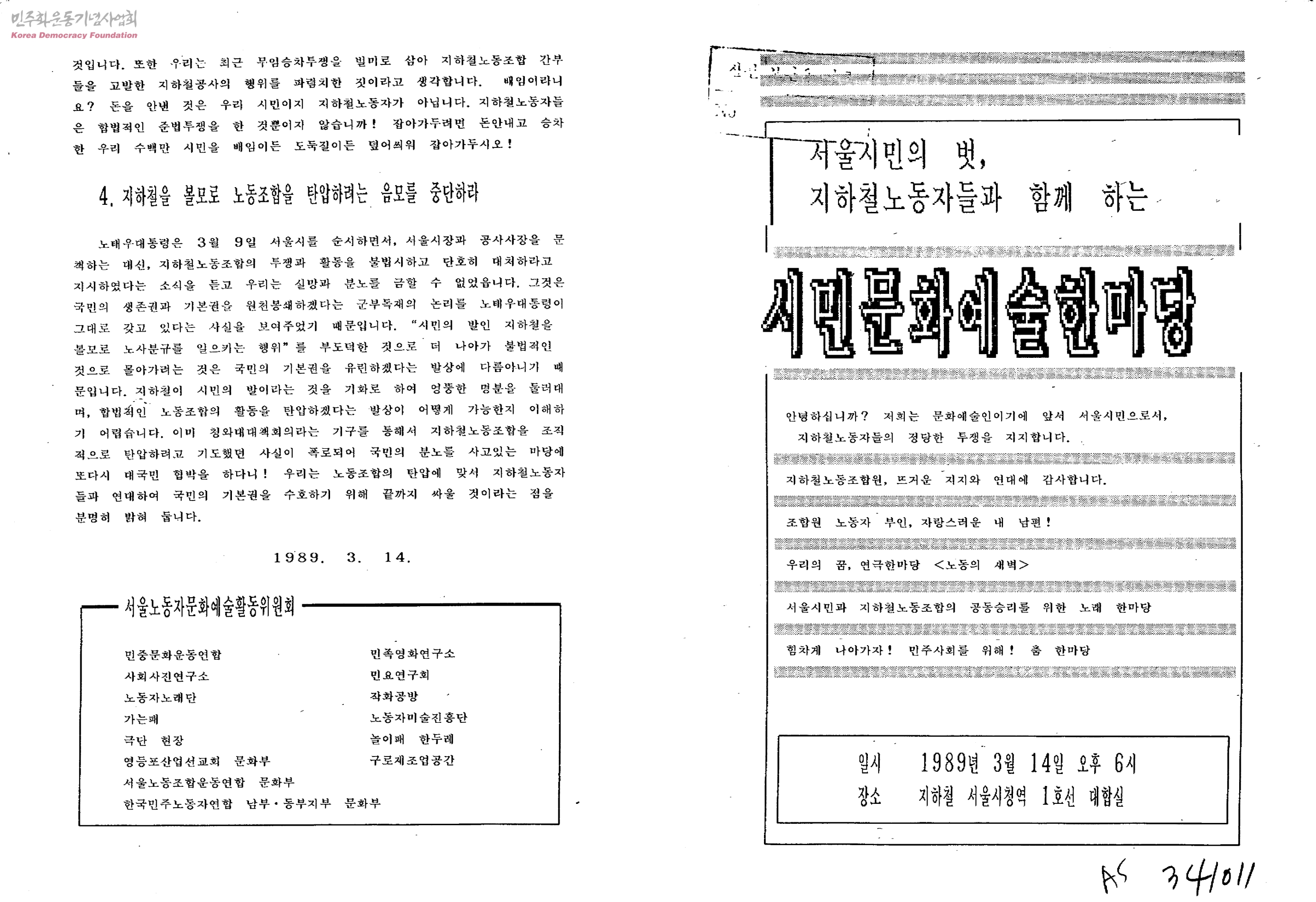 서울시민의 벗 지하철노동자들과 함께하는 시민문화예술한마당-서울시민의 벗, 지하철노동조합의 정당한 파업투쟁을 지지합니다
