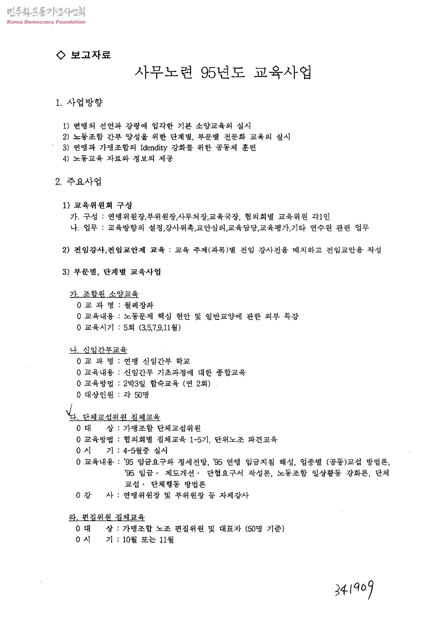 보고자료-사무노련 95년도 교육사업