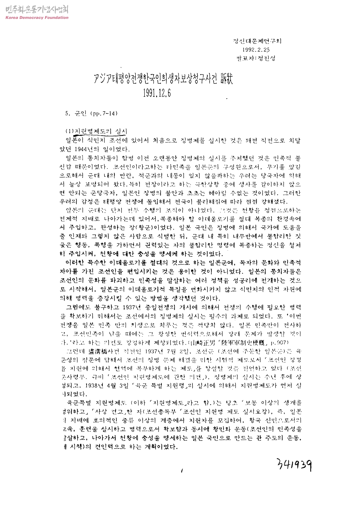 アジア태평양전쟁한국인희생자보상청구사건 訴狀