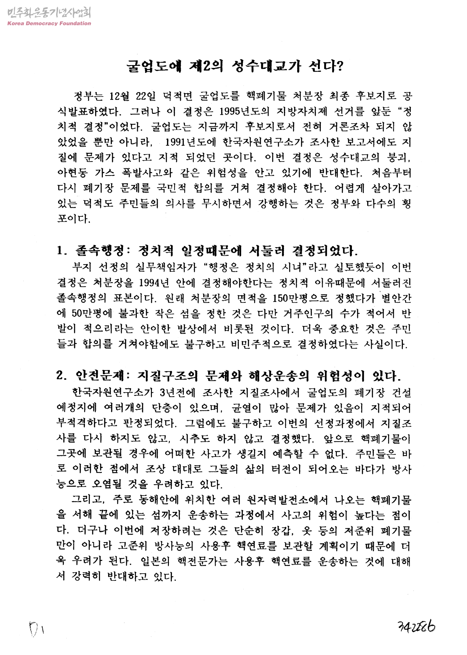 굴업도에 제2의 성수대교가 선다?