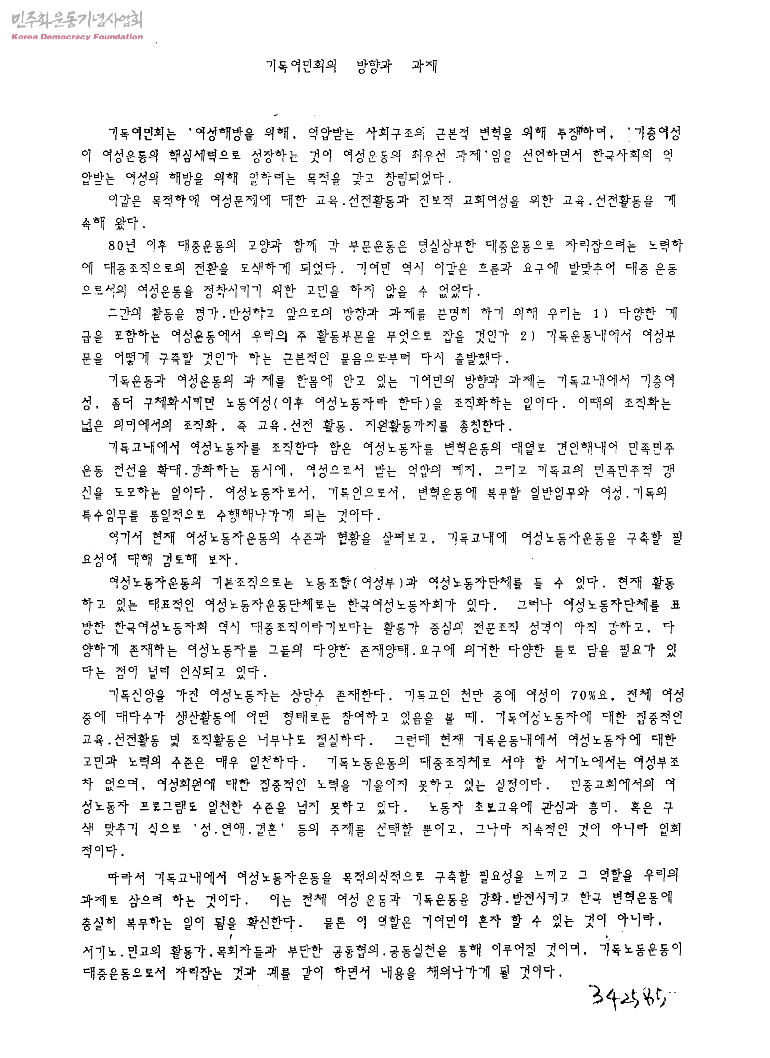 기독여민회의 발향과 과제