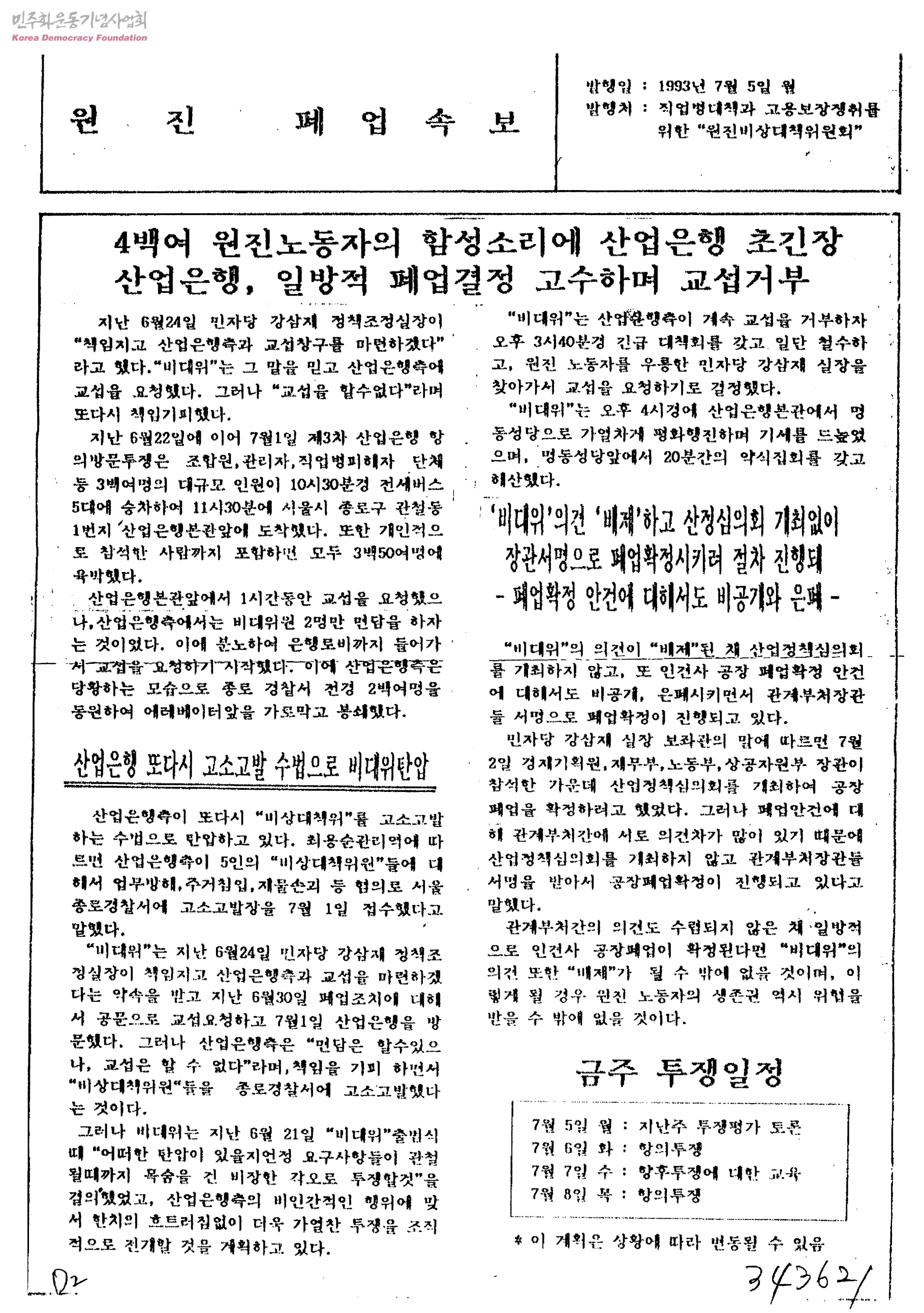 - 직업병대책과고용보장쟁취를위한원진비상대책위원회