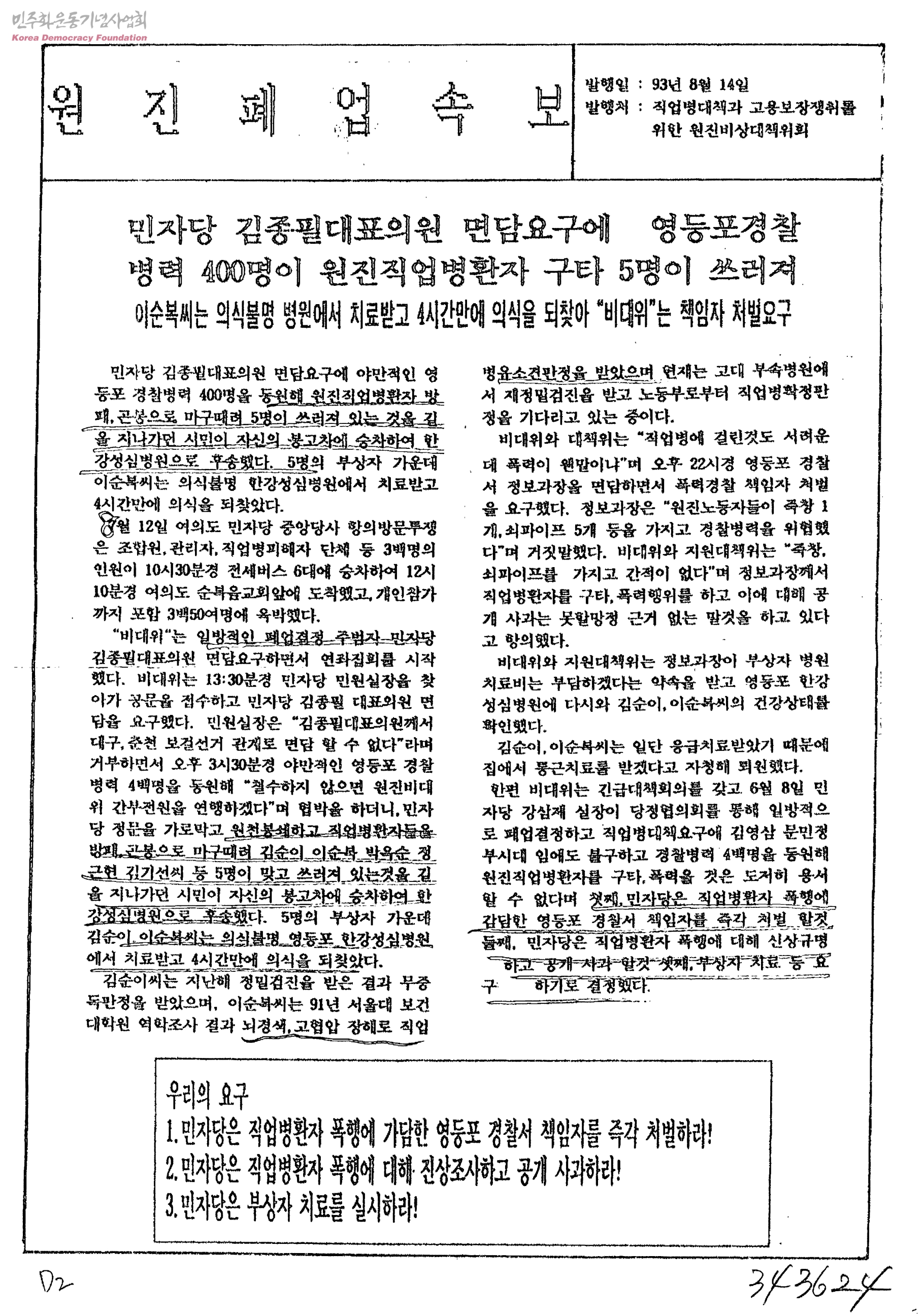 - 직업병대책과고용보장쟁취를위한원진비상대책위원회