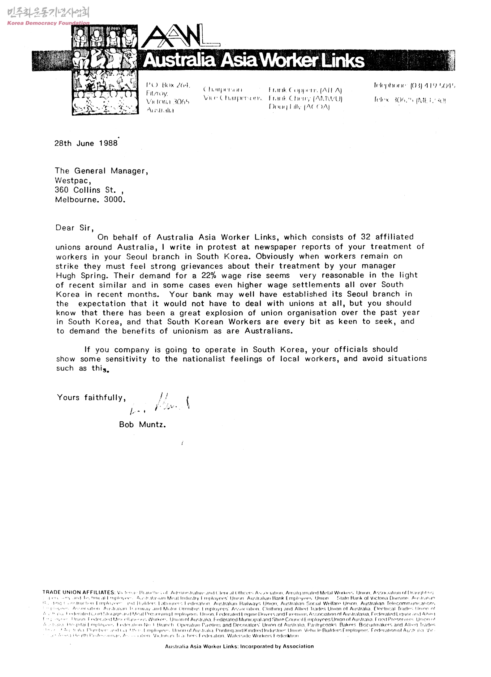 [to protest at newspaper reports of your treatment of workers in Seoul branch in South Korea]