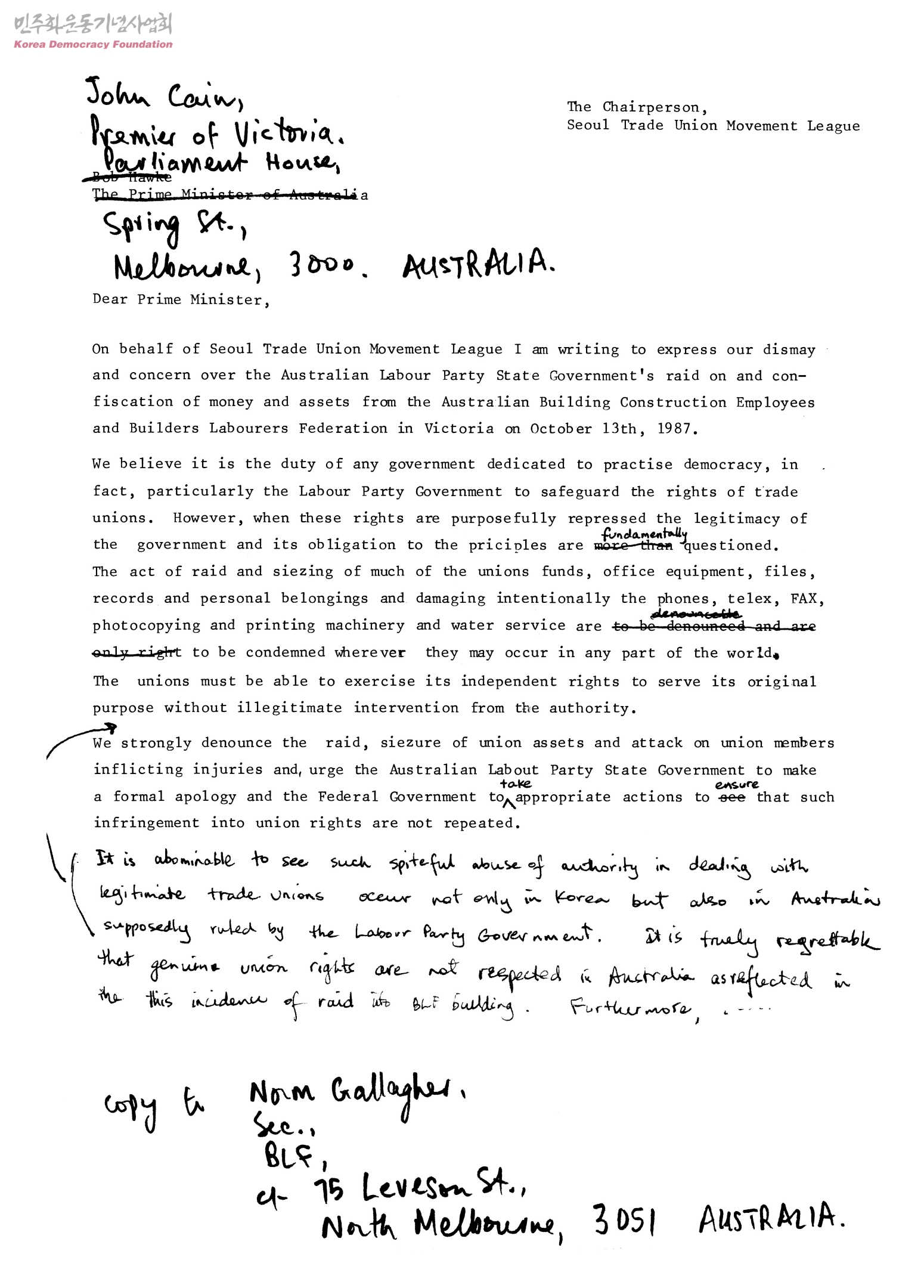 [To express our dismay and concern over the Australian Labour Party State Government's raid on]