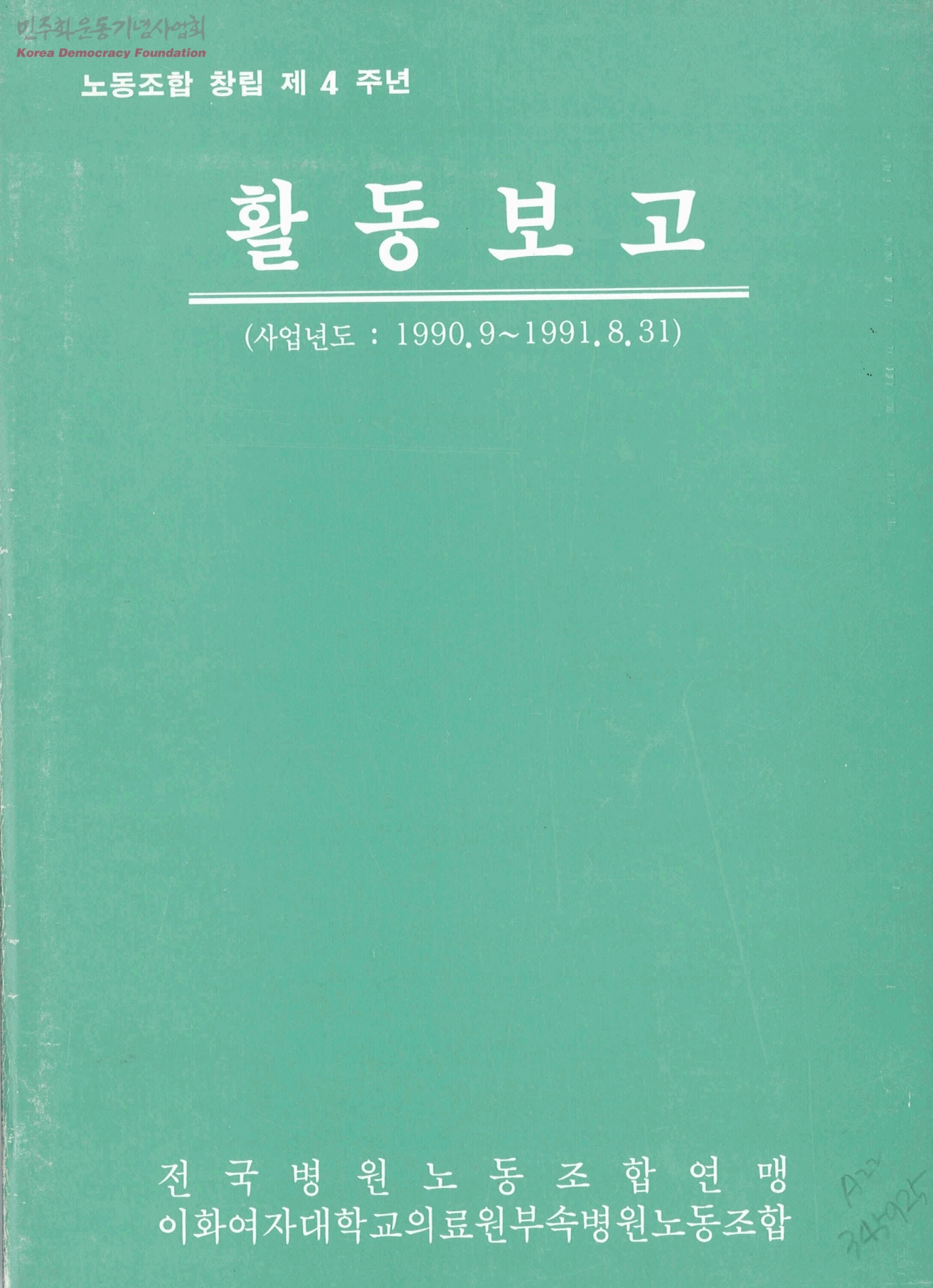 노동조합 창립 제4주년 활동보고사업년도:1990.09~1991.8.31)