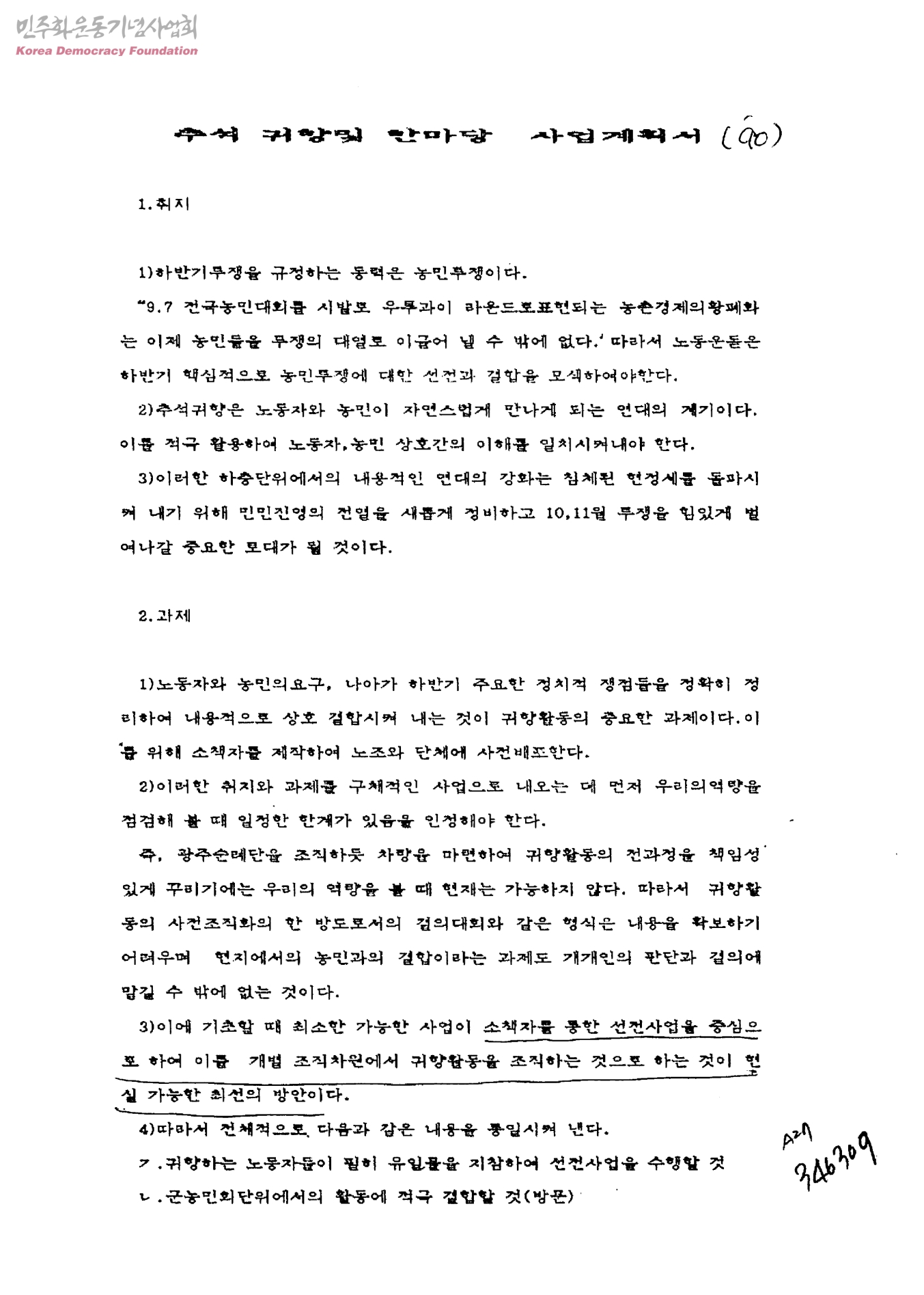 추석 귀향및 한마당 사업계획서