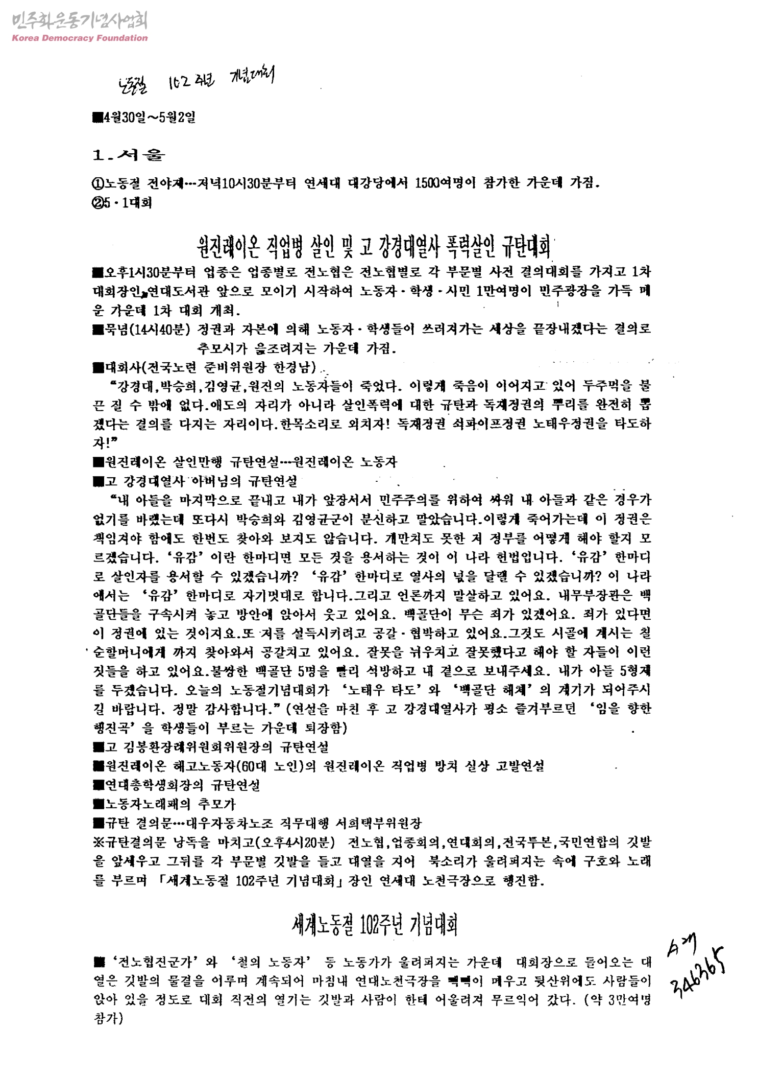 노동절 102주년 기념대회(4월30일~5월2일)