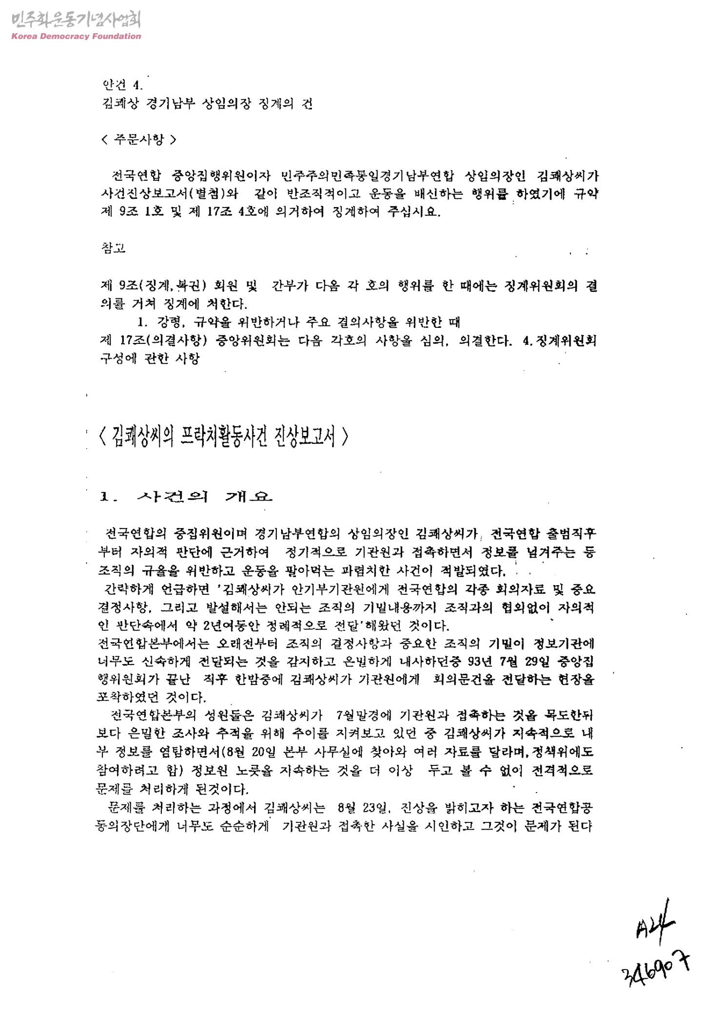 김쾌상 경기남부 상임의장 징계의 건
