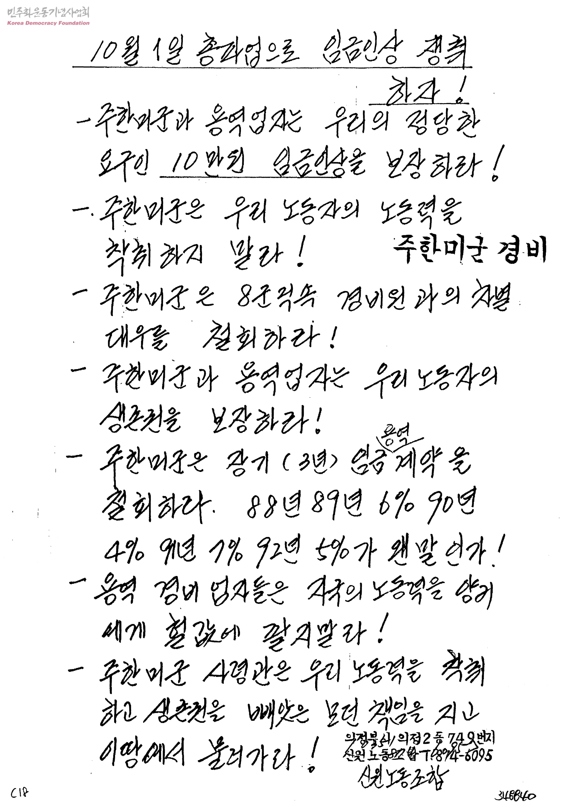 10월1일 총파업으로 임금인상 쟁취하자![주한미군용역업체의 임금인상요구]