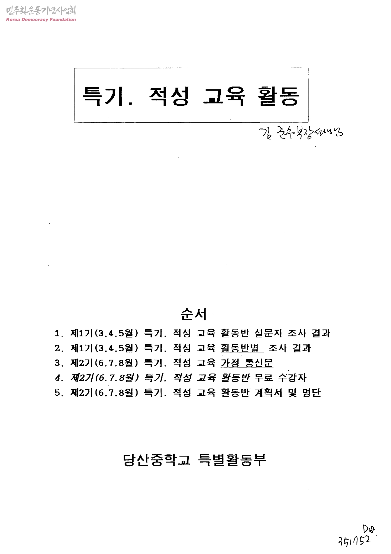 - 당산중학교특별활동부
