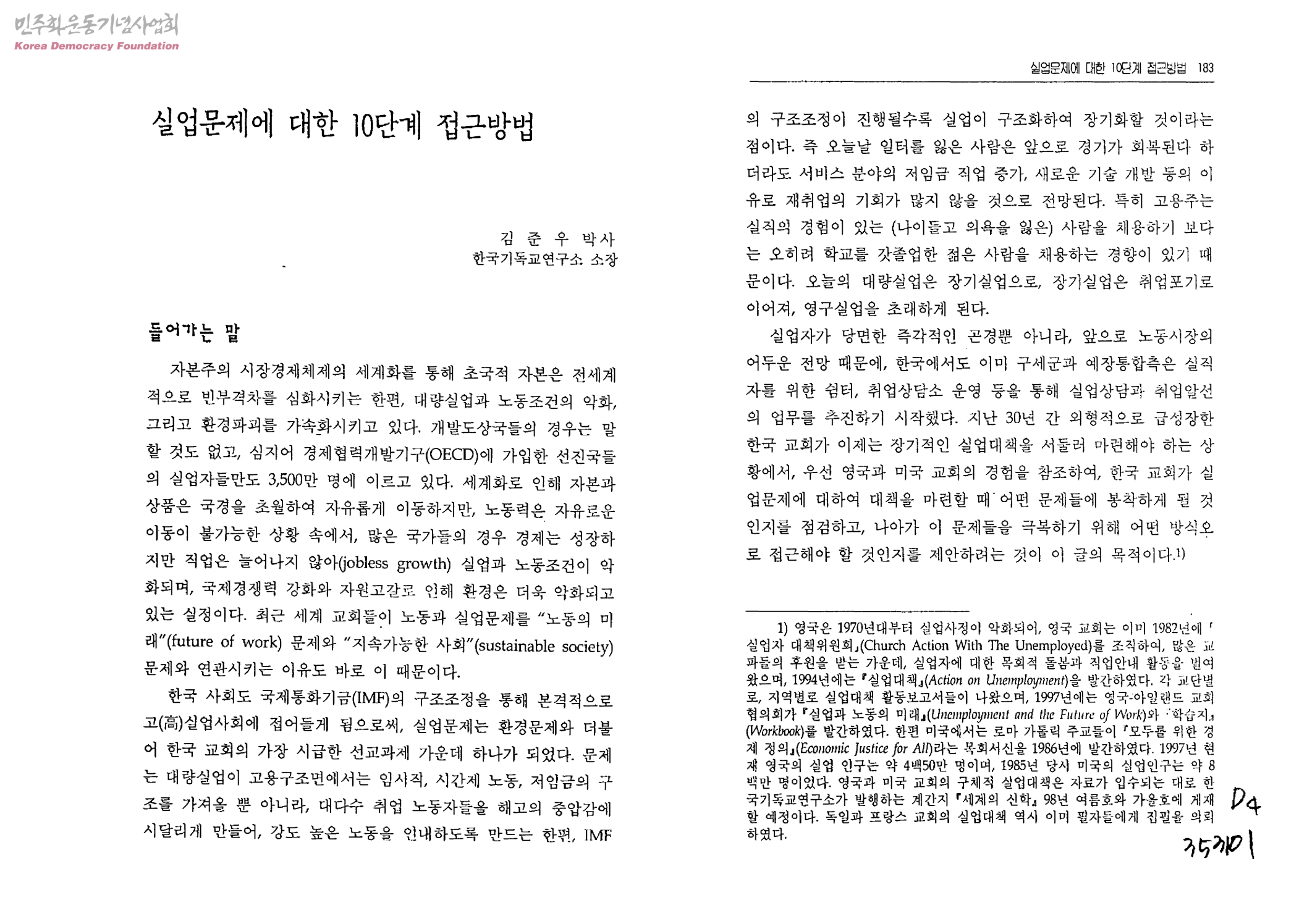 - 김준우(한국기독교연구소소장)